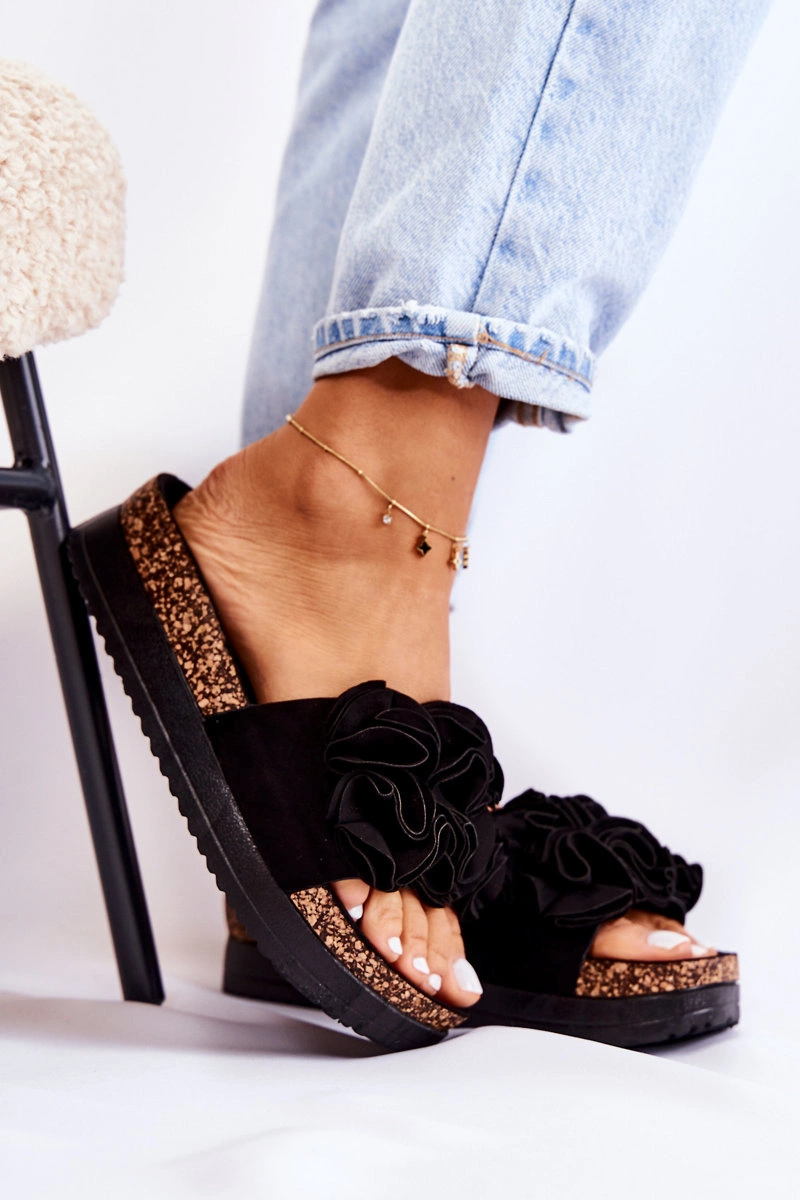 Damskie Zamszowe Klapki Z Ozdobą Czarne Nemis