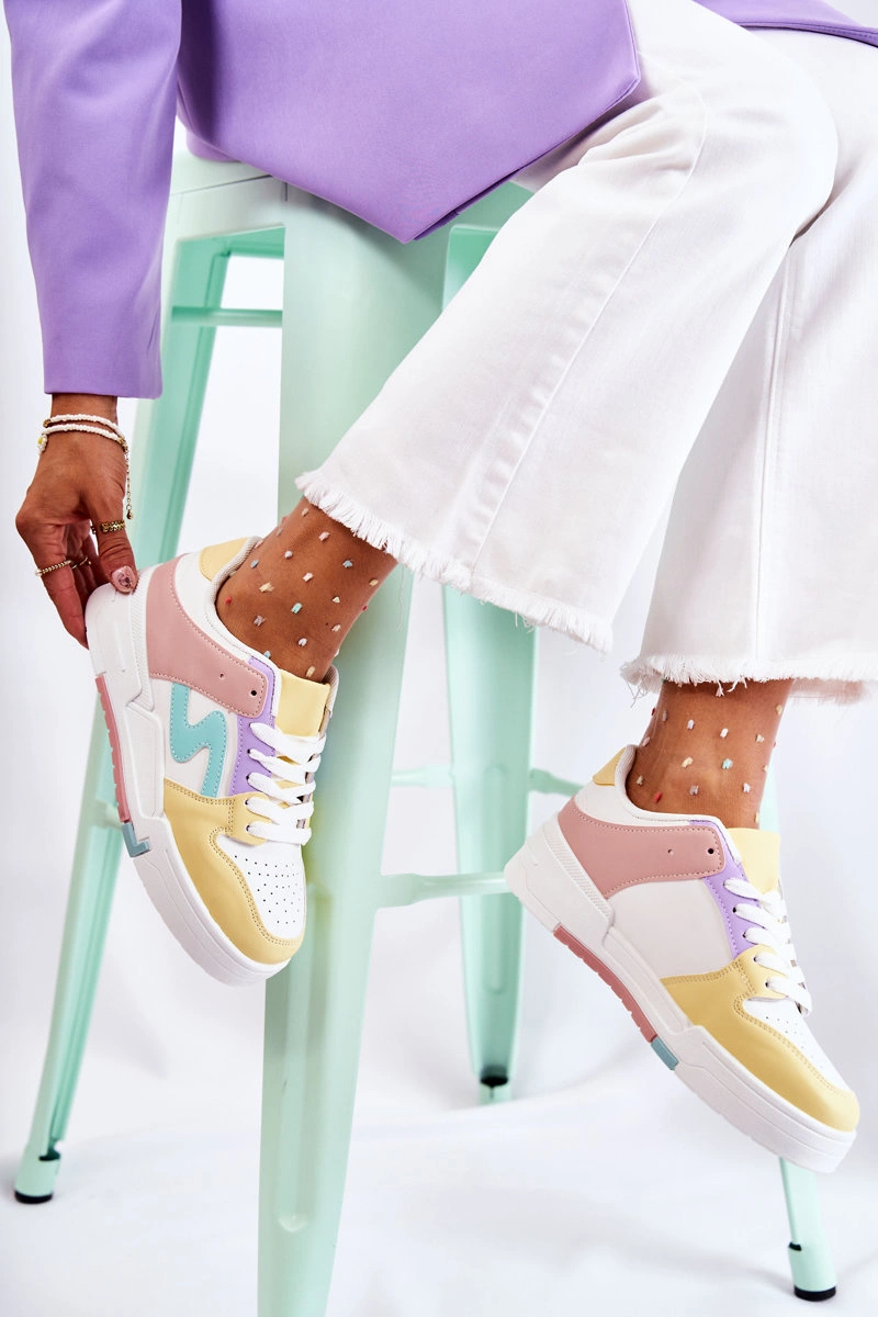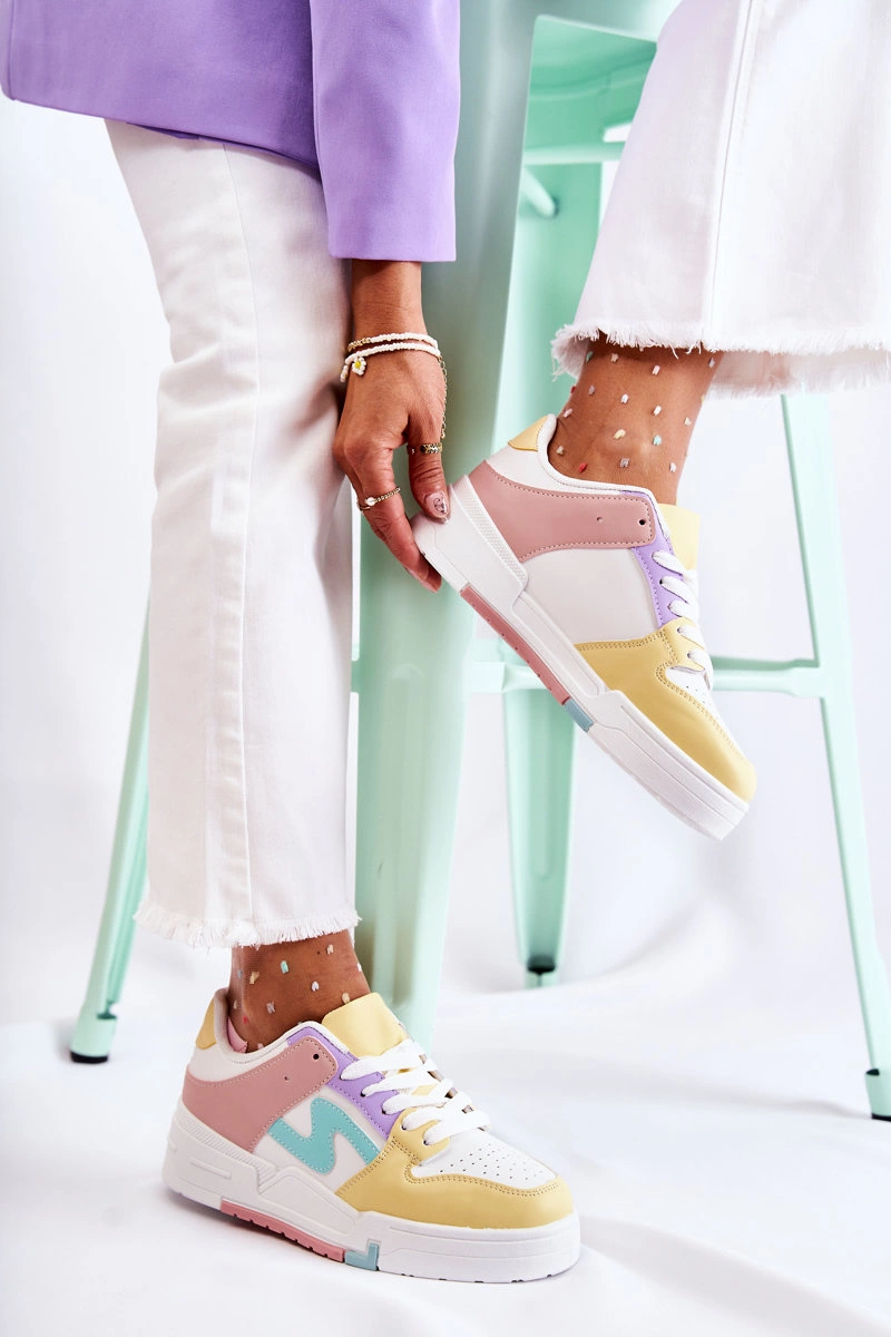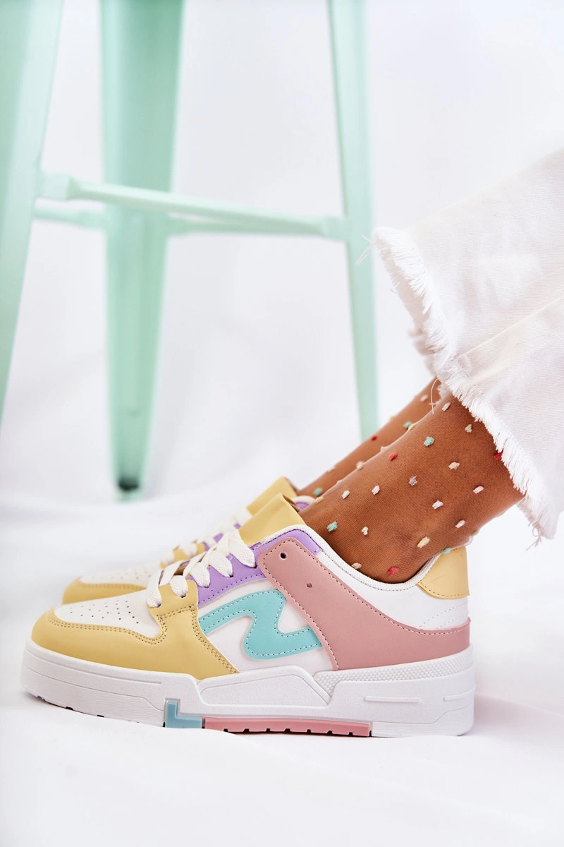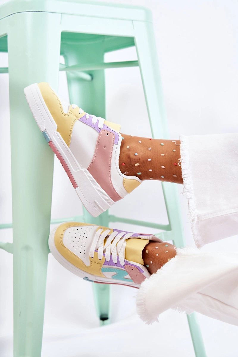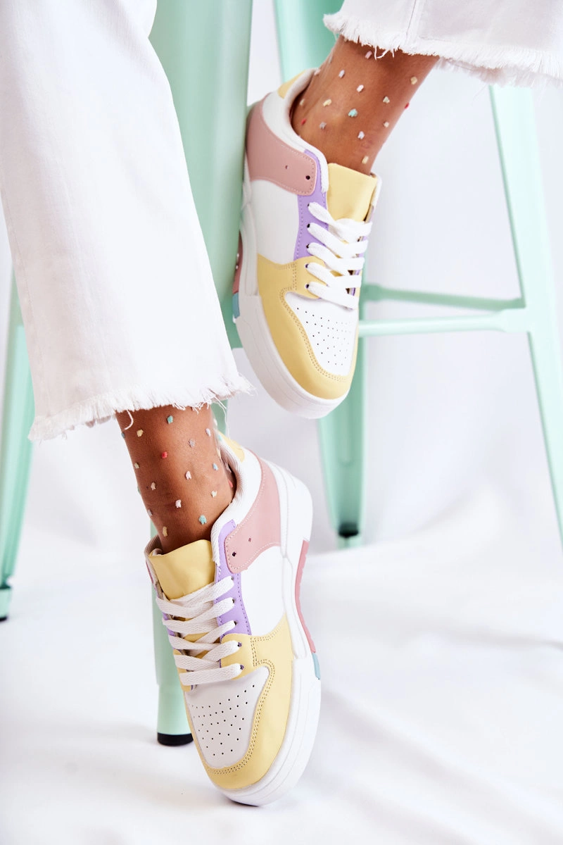 Damskie Skórzane Buty Sportowe Biało-Żólte Francis