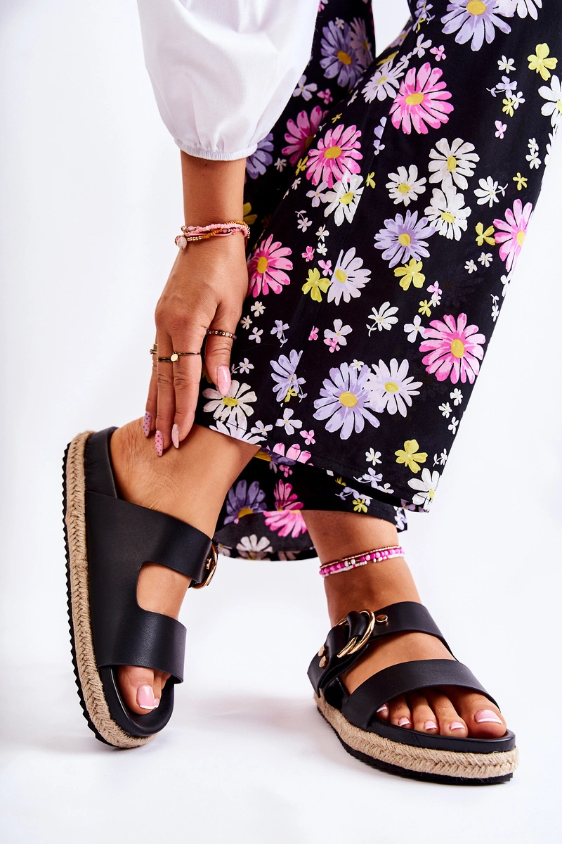 Idealne klapki na letnie spacery oraz codzienne wyjścia na zakupy. Klapki te posiadają dwa szerokie paski. Wygoda oraz komfort użytkowania gwarantowane, dzięki profilowanej, wykonanej z eko skóry wkładce. Platforma wykonana z lekkiego tworzywa sztucznego zdobiona plecionką z juty. Podeszwa jest gumowa i antypoślizgowa. Klapki te sprawiają, że Twoje stopy będą wypoczęte i zrelaksowane. Przy wyborze rozmiaru prosimy sugerować się tabelą rozmiarów.