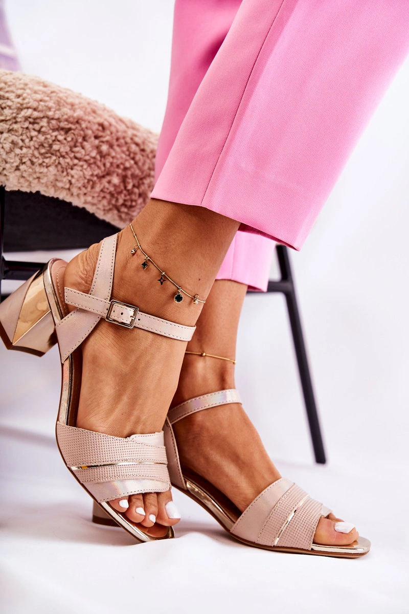 Skórzane Sandały Na Słupku Złoty Beż Corane