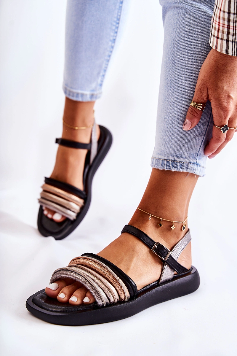 Modne Skórzane Sandały Damskie Maciejka 05561-01 Czarne