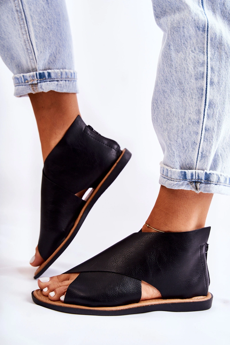 Damskie Skórzane Sandały Na Szeroką Stopę Czarne Catalise