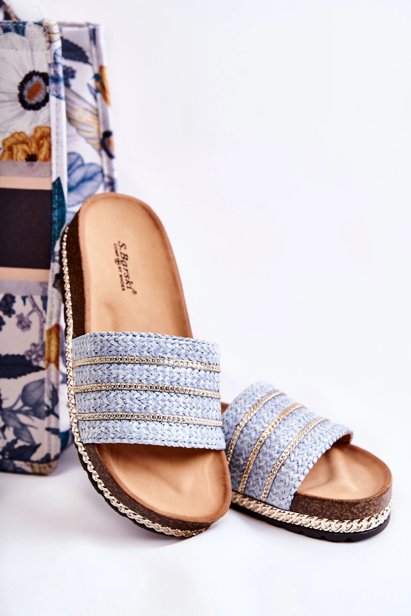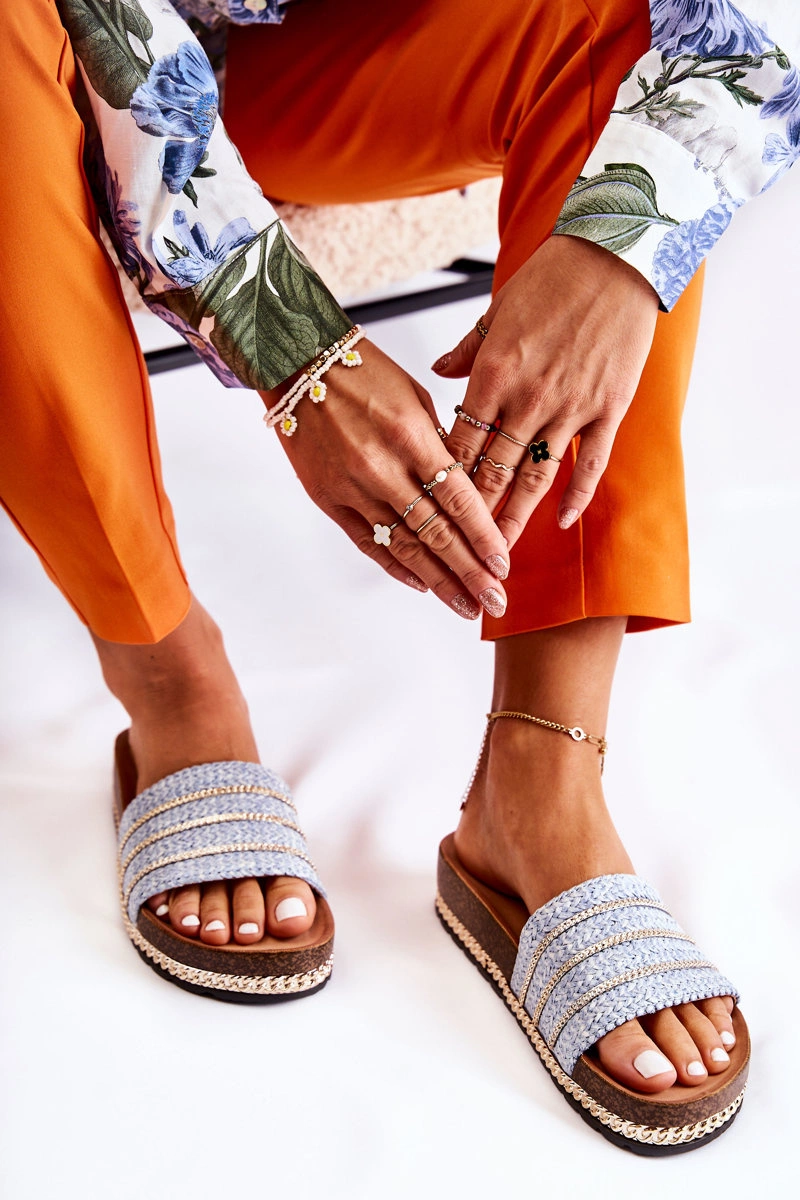 Damskie Klasyczne Klapki Z Łańcuszkiem Niebieskie Maddy