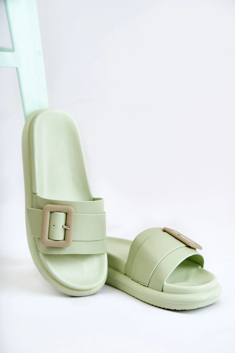 Damskie Skórzane Klapki Z Klamrą Zielone Devia