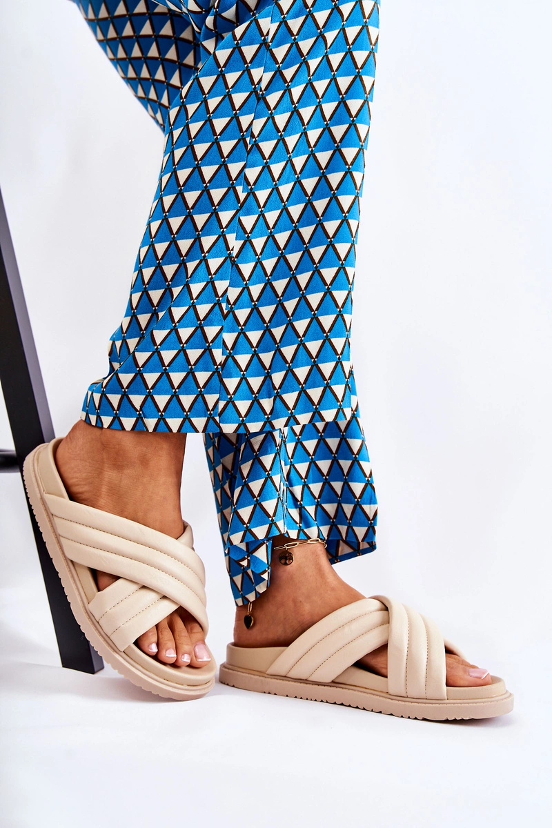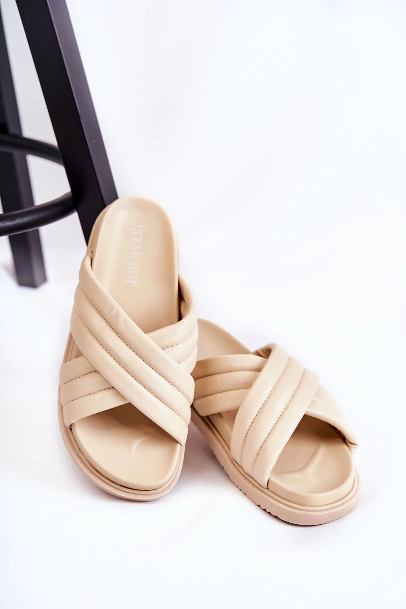 Klasyczne Damskie Klapki Skórzane Beżowe Daron