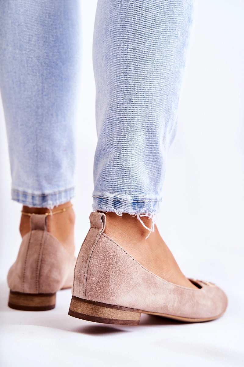Damskie Zamszowe Baleriny Z Ozdobą Nicole 2746 Beżowe