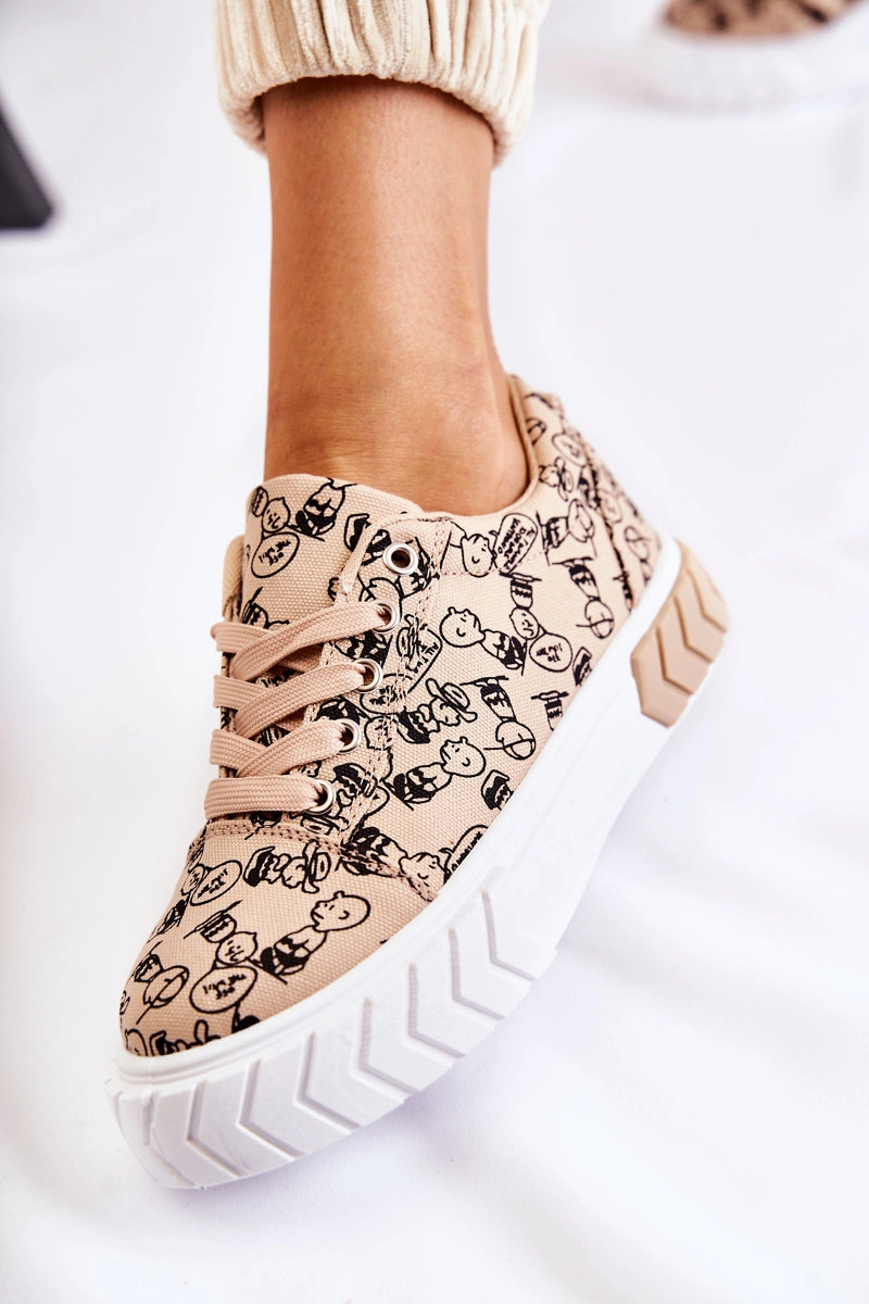 Damskie Sneakersy Buty Sportowe W Print Beżowe Awersa
