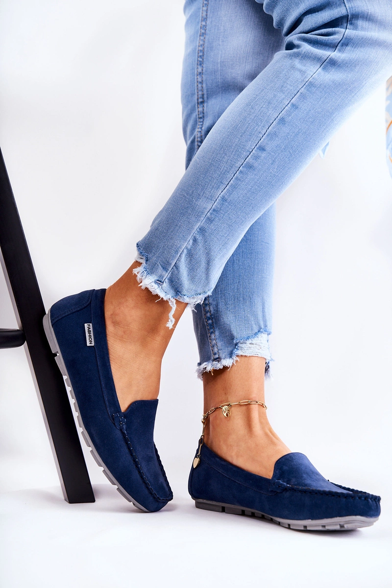 Zamszowe Mokasyny Damskie Granatowe Millare