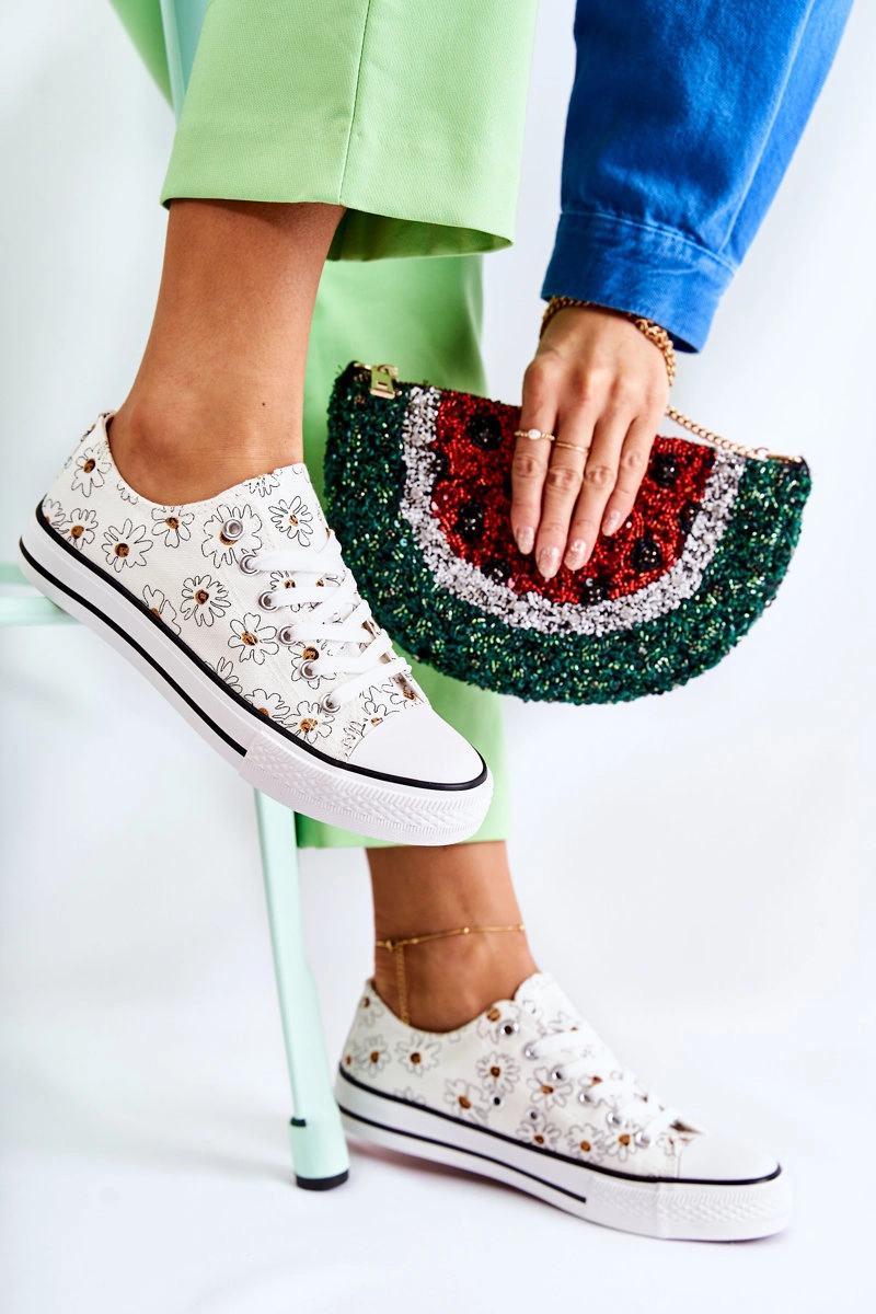 Niskie Damskie Trampki W Kwiaty Białe Janey
