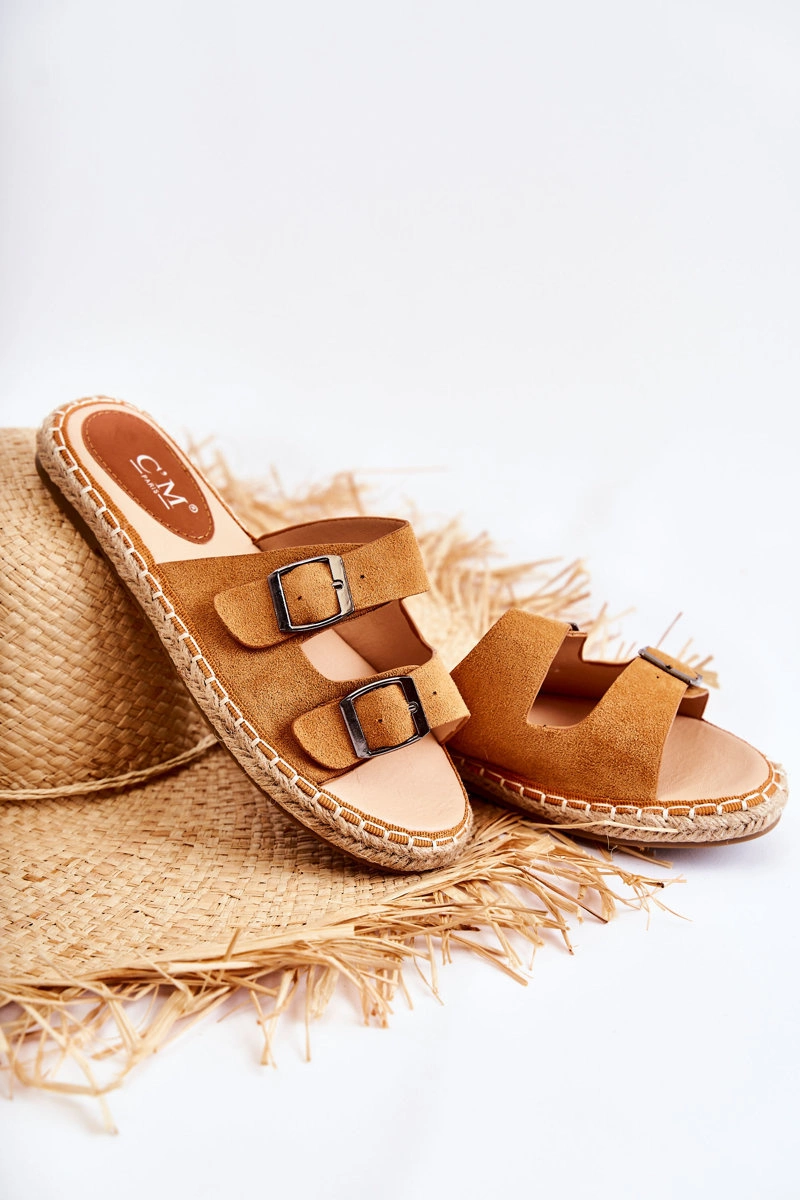 Klasyczne Zamszowe Klapki Damskie Camel Casilda