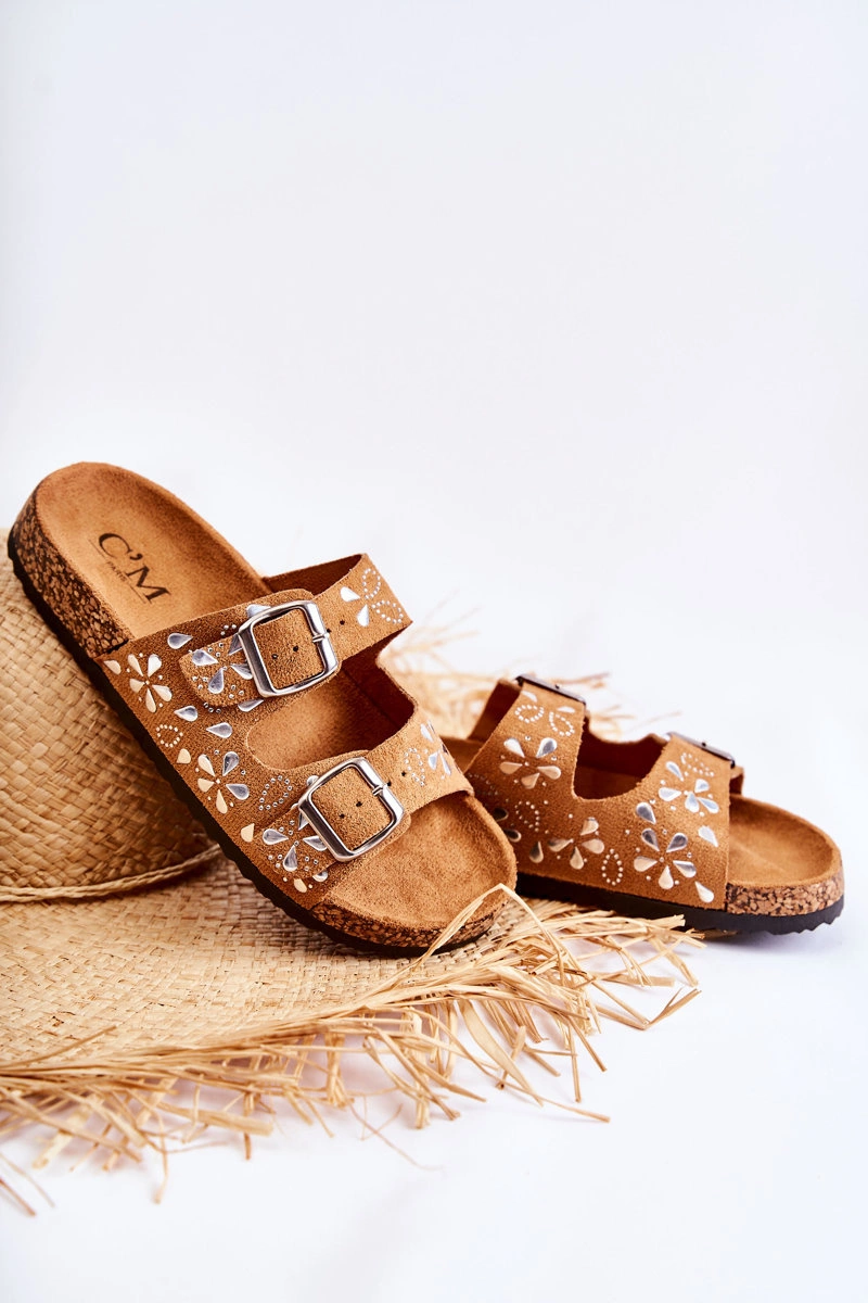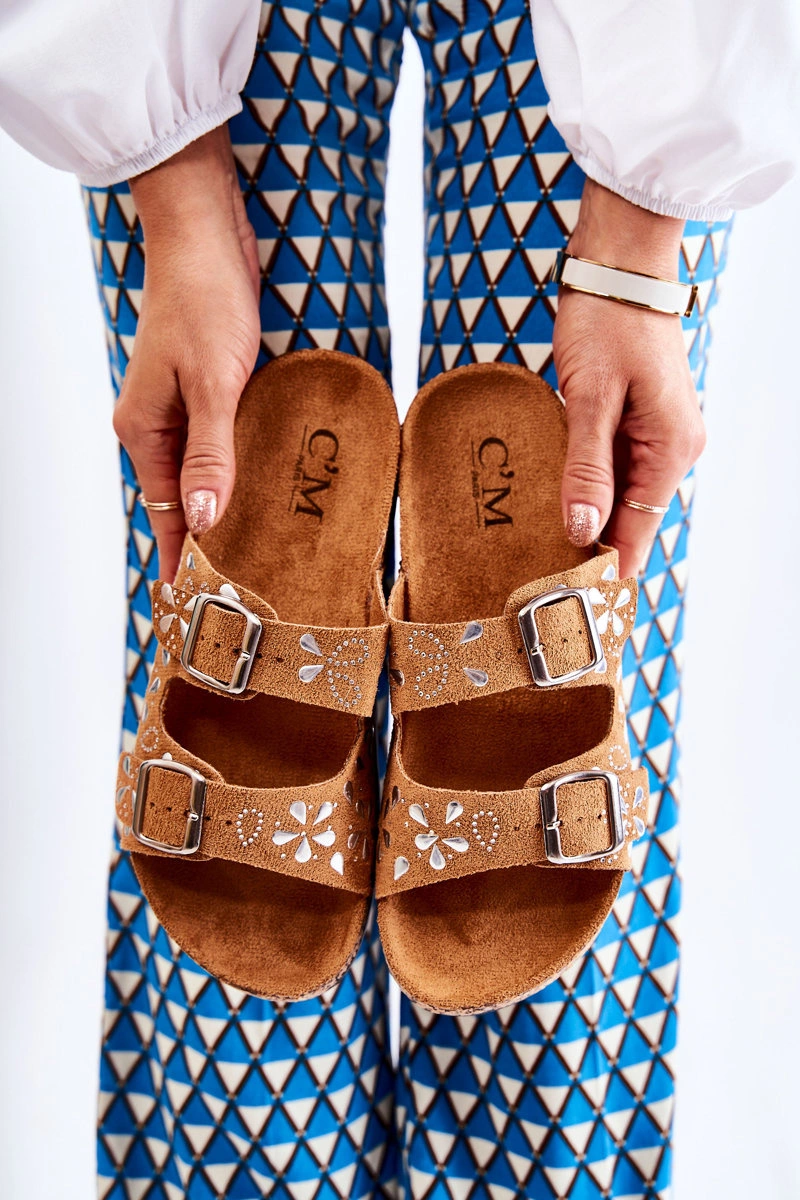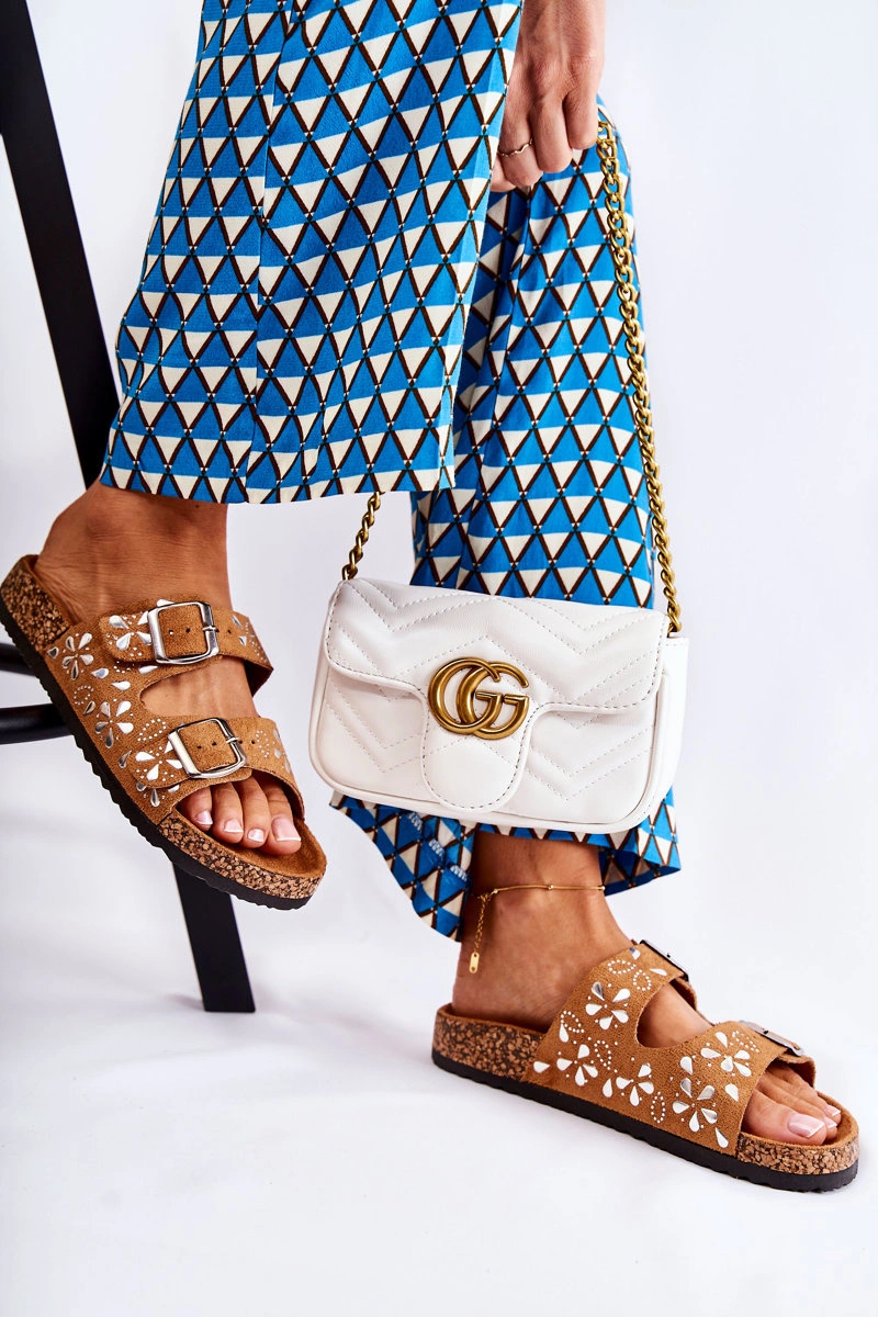 Zamszowe Klapki Z Dżetami Brązowe Dalvio