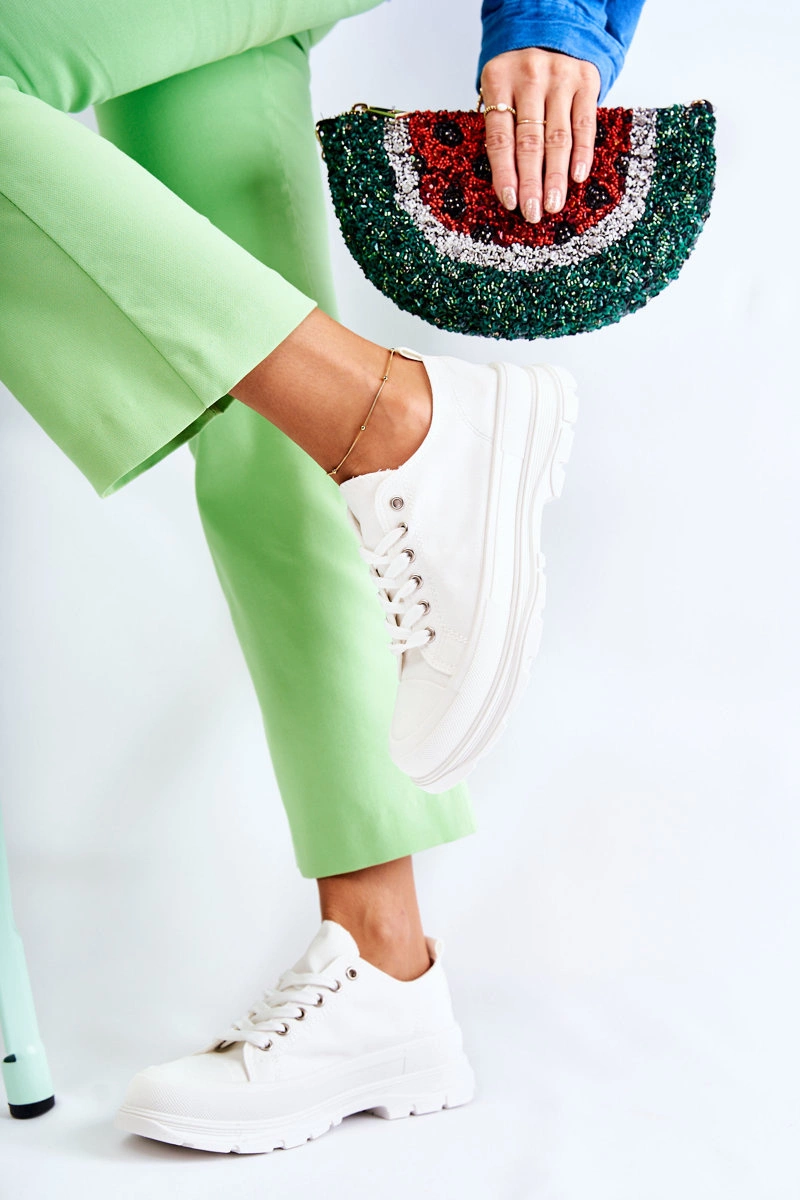 Damskie Niskie Trampki Materiałowe Białe Gueso