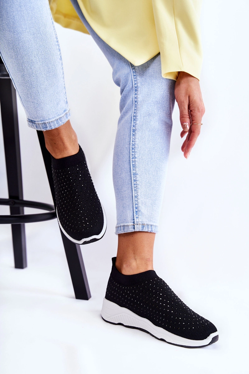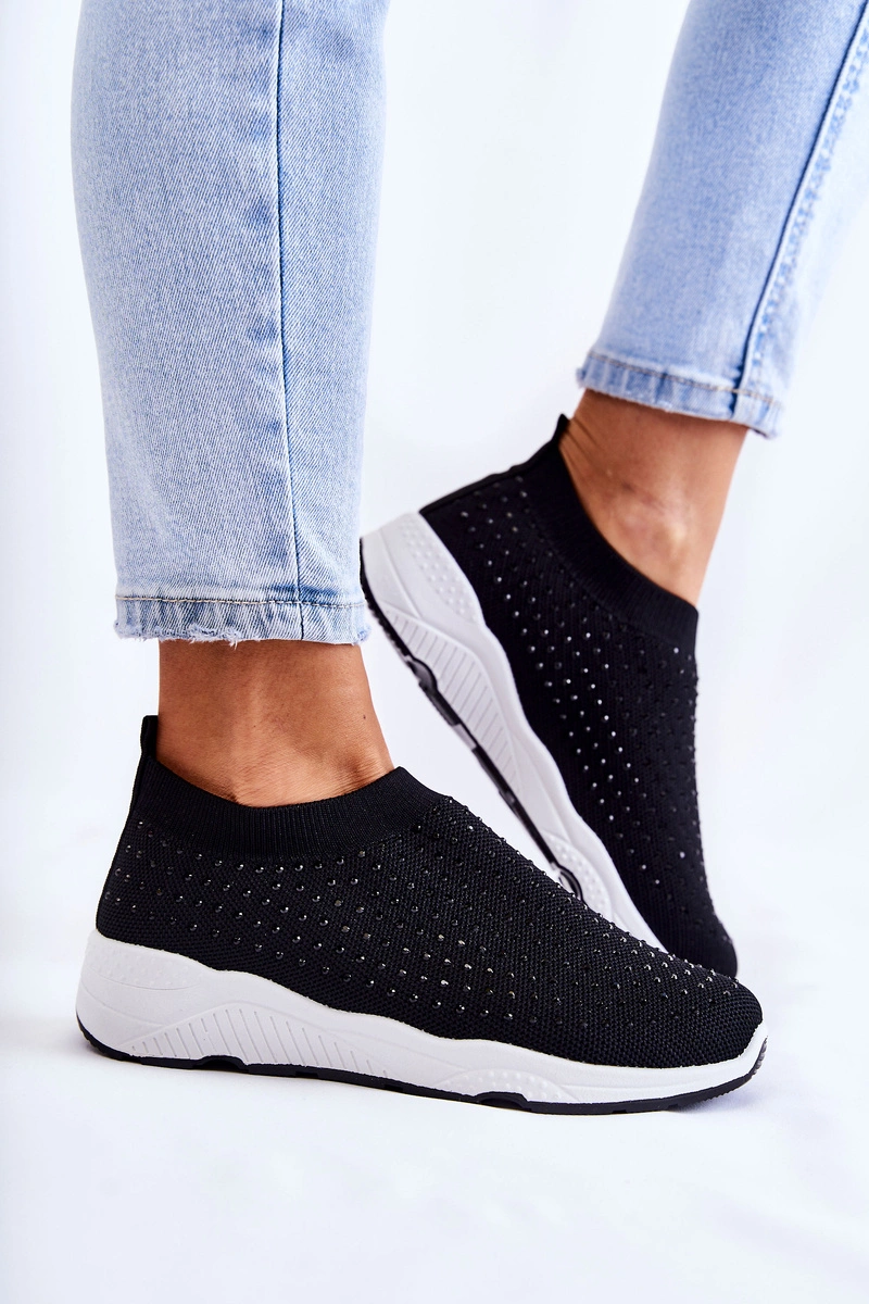 Damskie Wsuwane Buty Sportowe Z Cyrkoniami Czarne Calsey