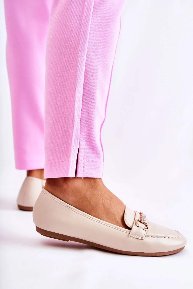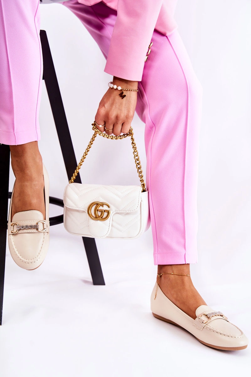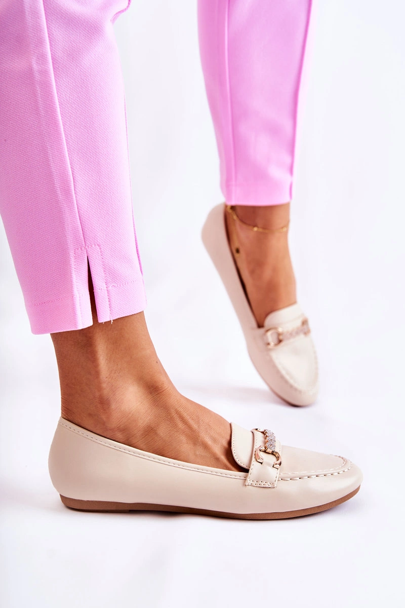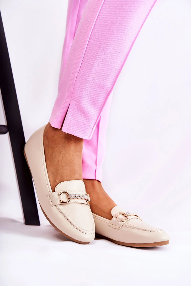 Eleganckie mokasyny osadzone na płaskim obcasie. Zostały wykonane z wysokiej jakości eko skóry z dbałością o każdy detal. Miękka wkładka z perforacją zadba o Twój komfort podczas użytkowania. Mokasyny sprawdzą się w wielu stylizacjach. Na przodzie znajduje się ozdobny element z dżetami imitującymi cyrkonie. Nosek zaokrąglony. Przy wyborze rozmiaru prosimy sugerować się tabelą rozmiarów.