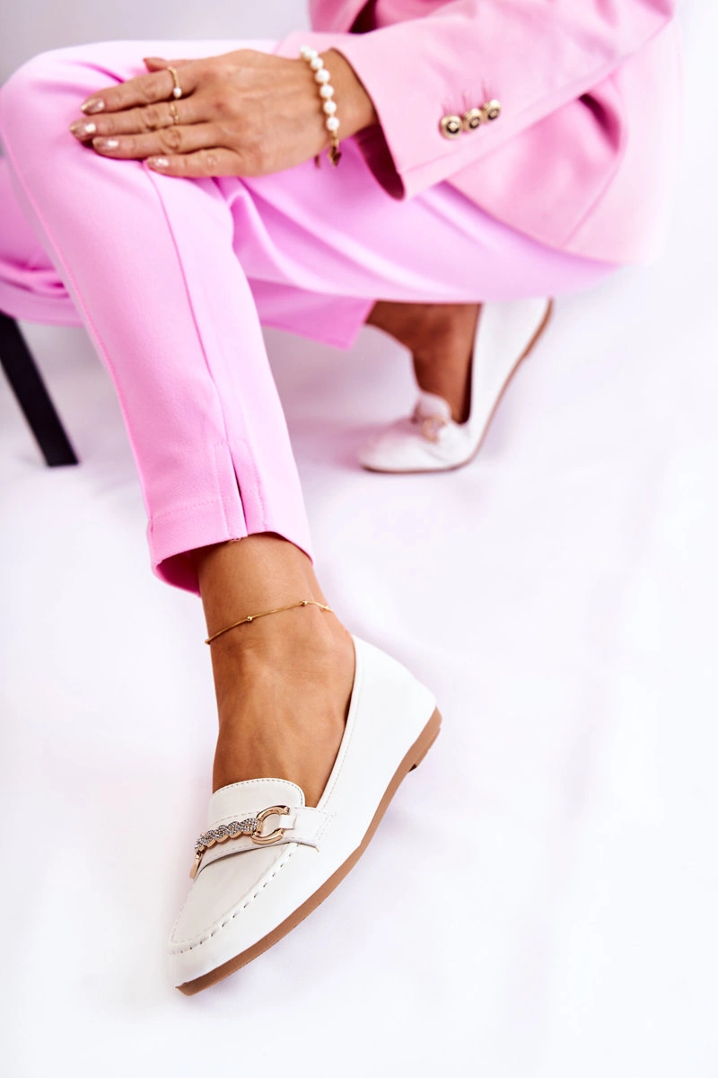 Eleganckie mokasyny osadzone na płaskim obcasie. Zostały wykonane z wysokiej jakości eko skóry z dbałością o każdy detal. Miękka wkładka z perforacją zadba o Twój komfort podczas użytkowania. Mokasyny sprawdzą się w wielu stylizacjach. Na przodzie znajduje się ozdobny element z dżetami imitującymi cyrkonie. Nosek zaokrąglony. Przy wyborze rozmiaru prosimy sugerować się tabelą rozmiarów.