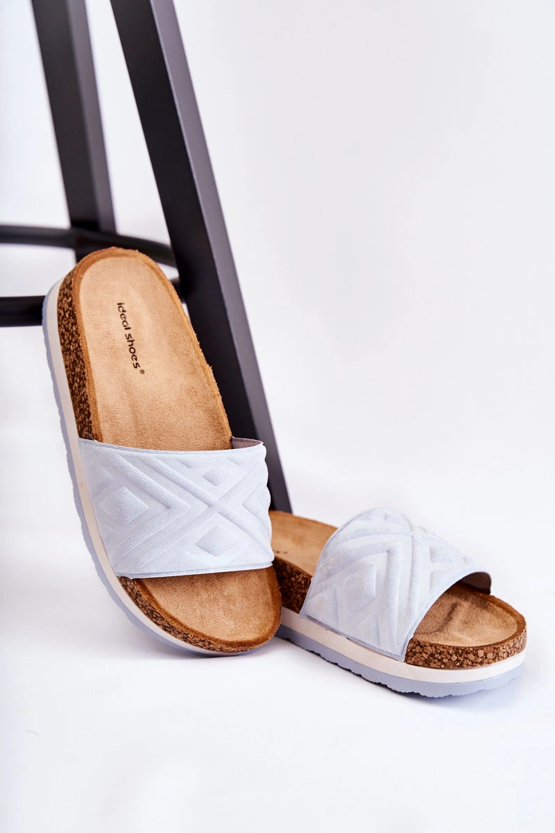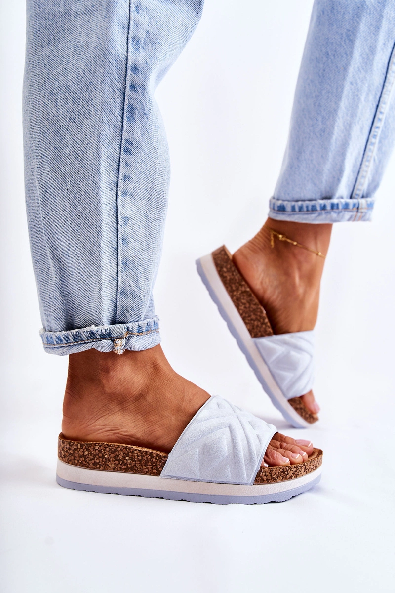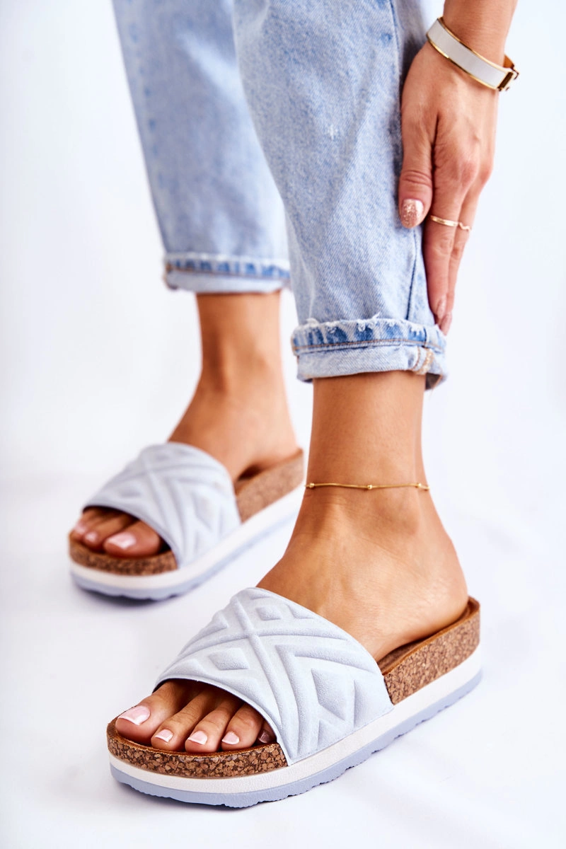 Damskie Zamszowe Klapki Na Masywnej Platformie Niebieskie Heritta