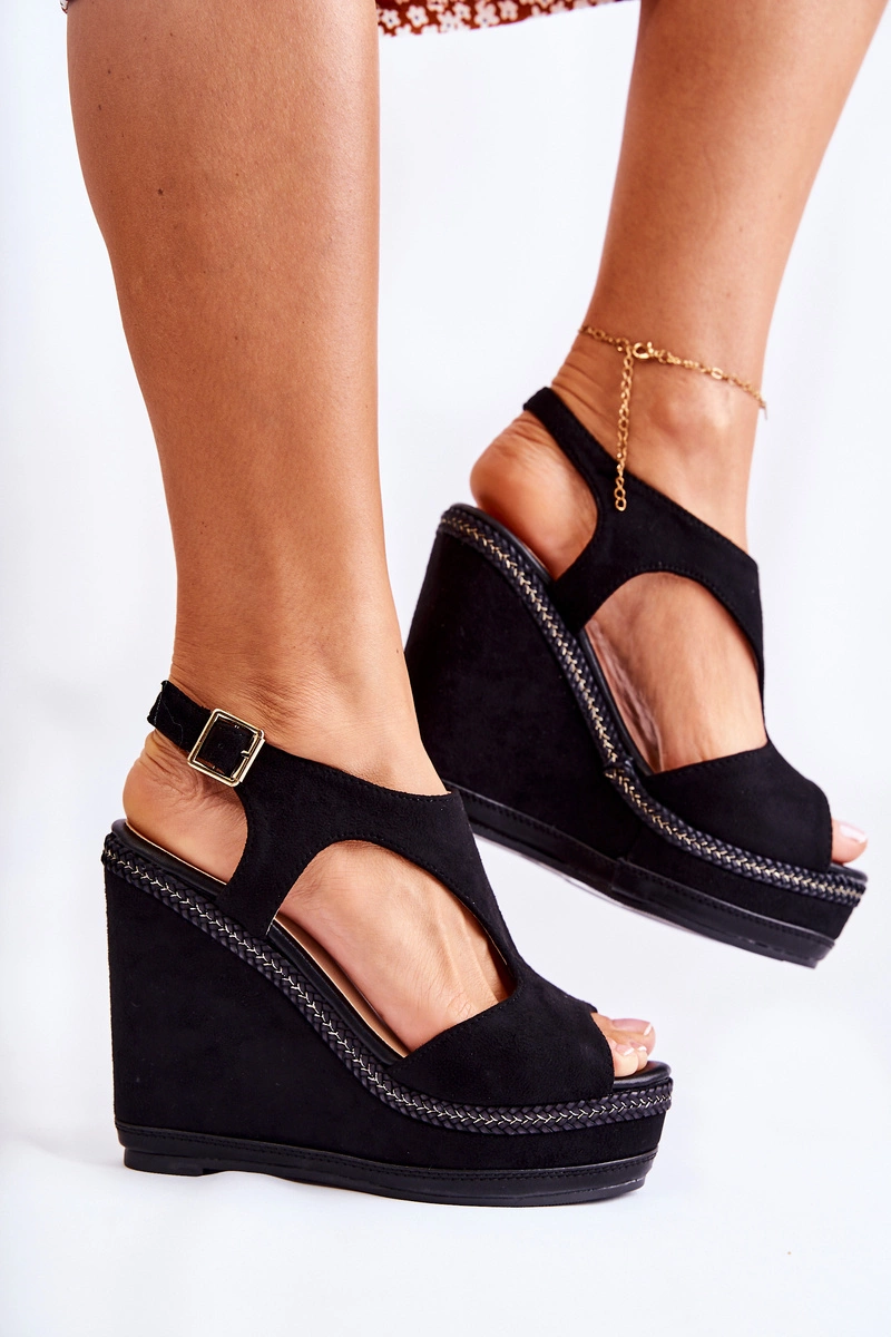 Klasyczne Zamszowe Sandały Na Koturnie Czarne Lysette