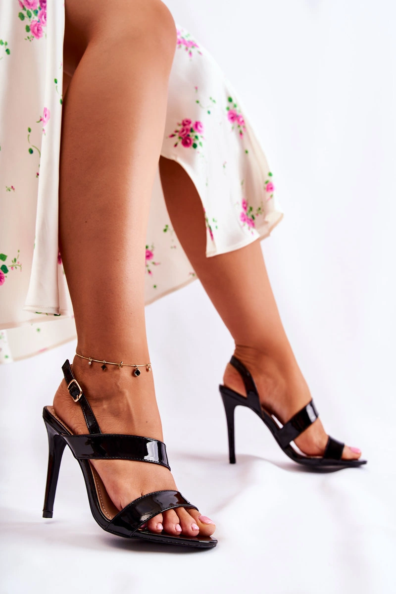 Lakierowane Sandałki Na Szpilce Czarne Retina