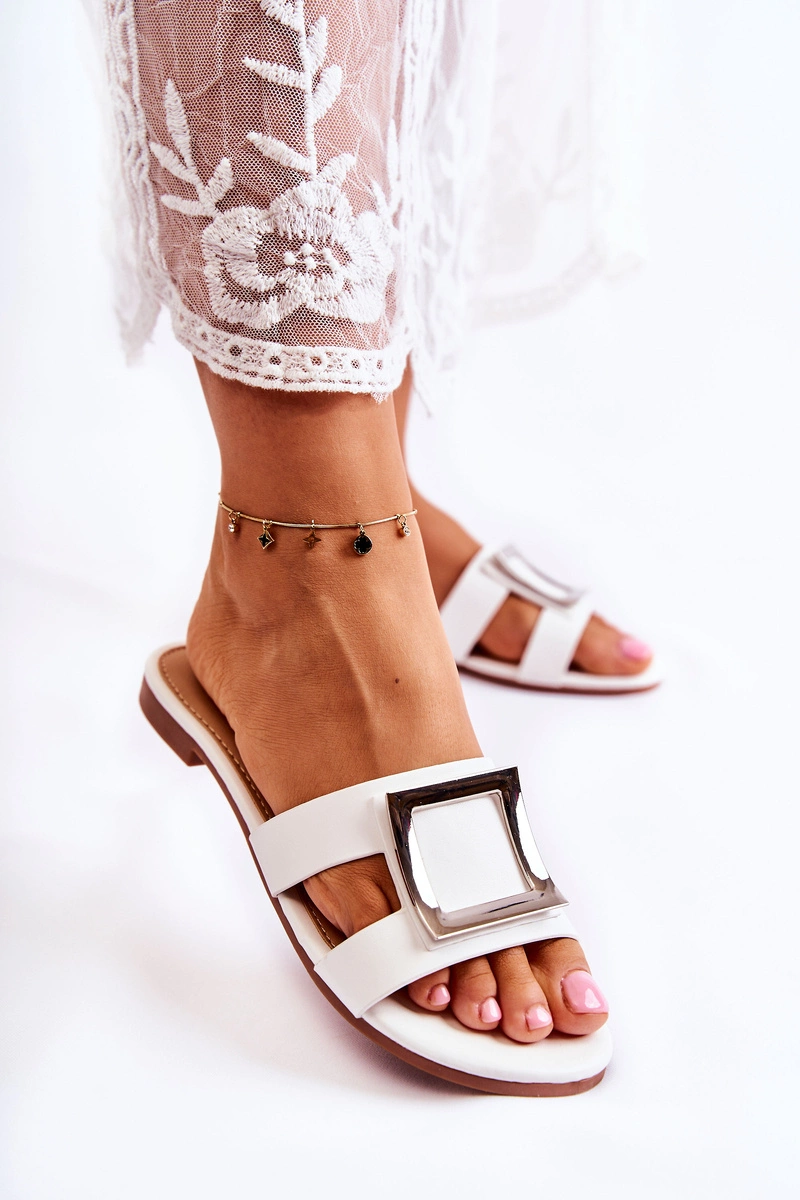 Damskie Skórzane Klapki Z Ozdobą Białe Roysa
