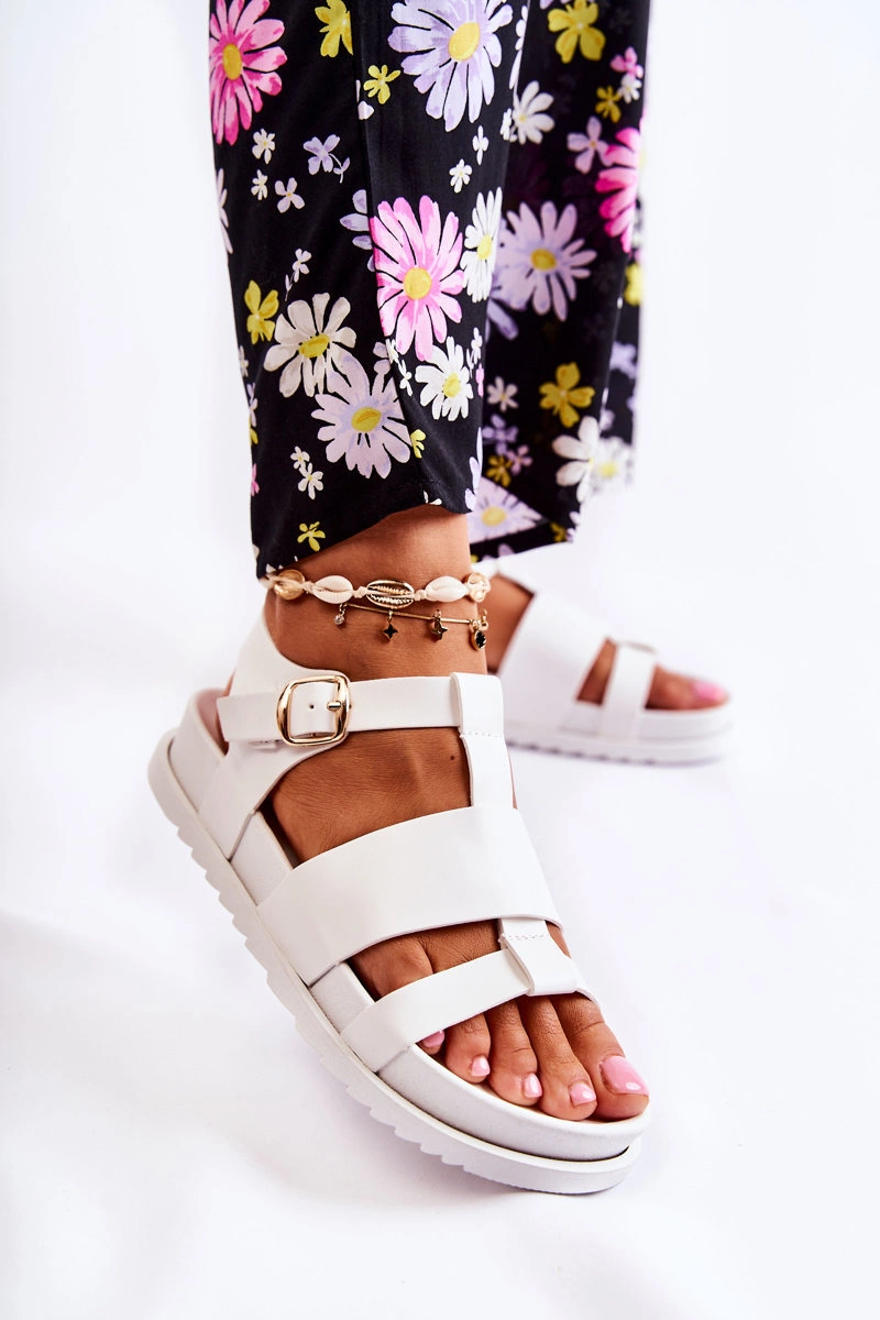 Modne oraz przewiewne sandały wykonane z eko skóry. Zapinane na regulowany pasek ze sprzączką. Sandałki posiadają odkryty, zaokrąglony nosek oraz odkrytą piętę. Miękka wkładka z tworzywa sztucznego zapewni wygodę podczas użytkowania. Dodatkowo wkładka jest profilowana. Platforma sprawia, że buty są niezwykle stabilne. Te sandałki to idealny fason na upalne dni. Świetnie będą prezentować się z zarówno ze spodniami, jak i sukienkami. Przy wyborze rozmiaru prosimy sugerować się tabelą rozmiarów.
