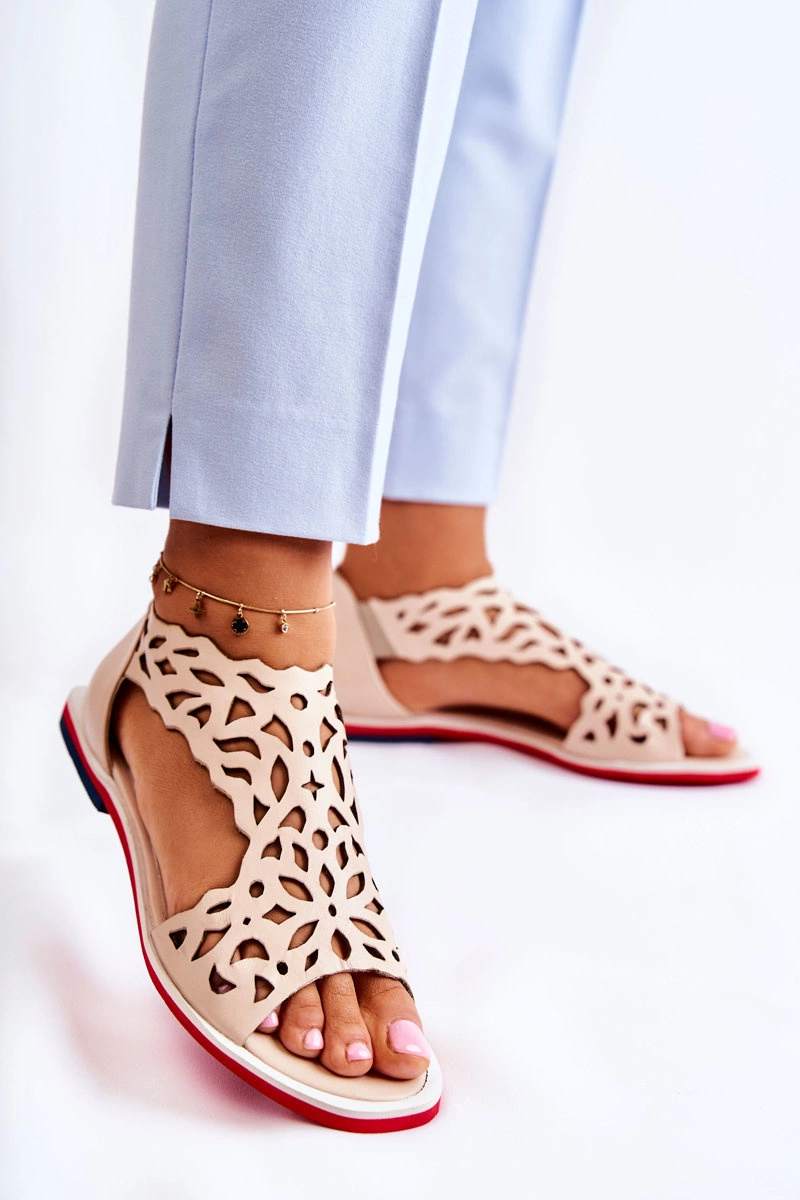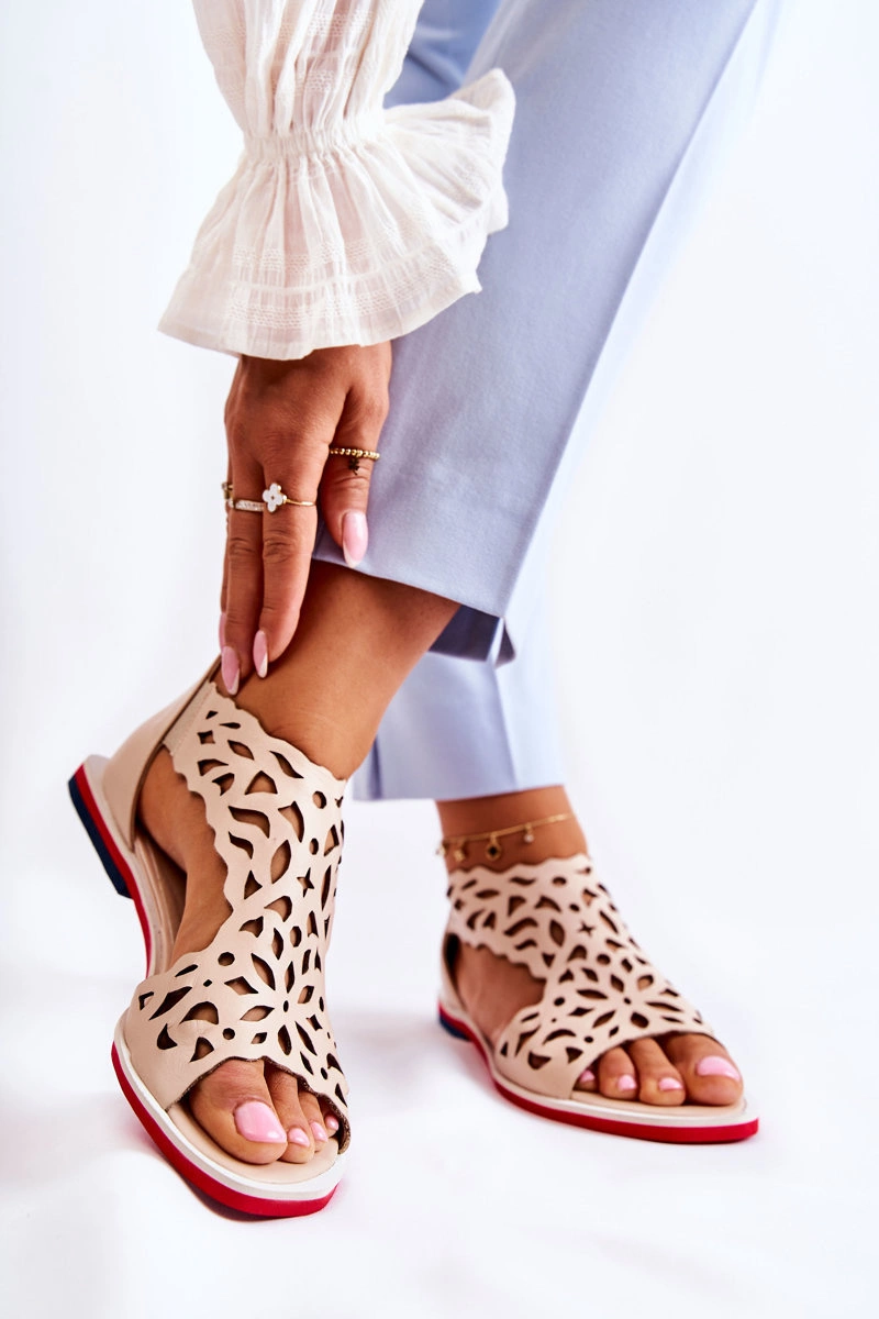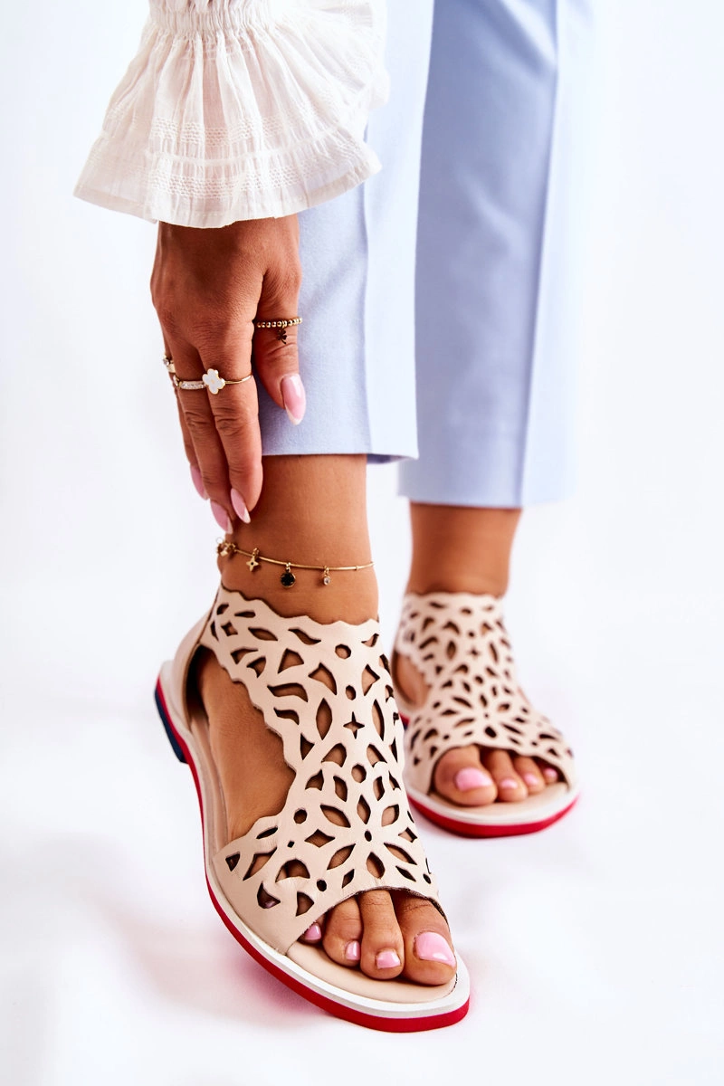 Skórzane Lekkie Ażurowe Sandały Beżowe Alima