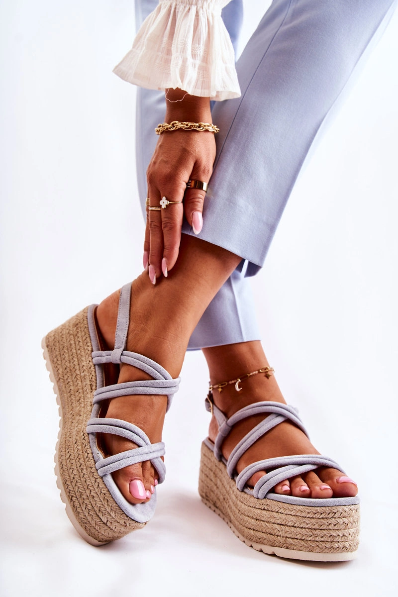 Sandały Na Platformie Z Plecionką Niebieskie Crazy In Love