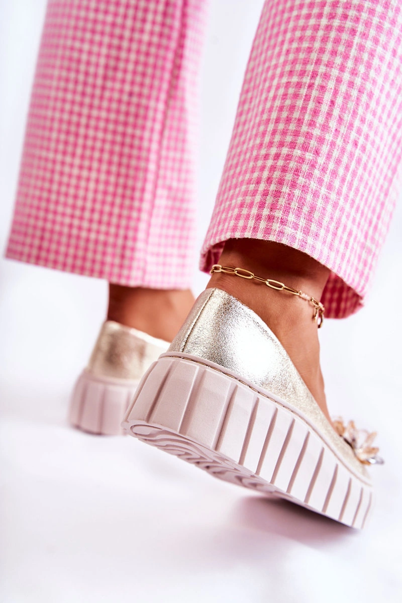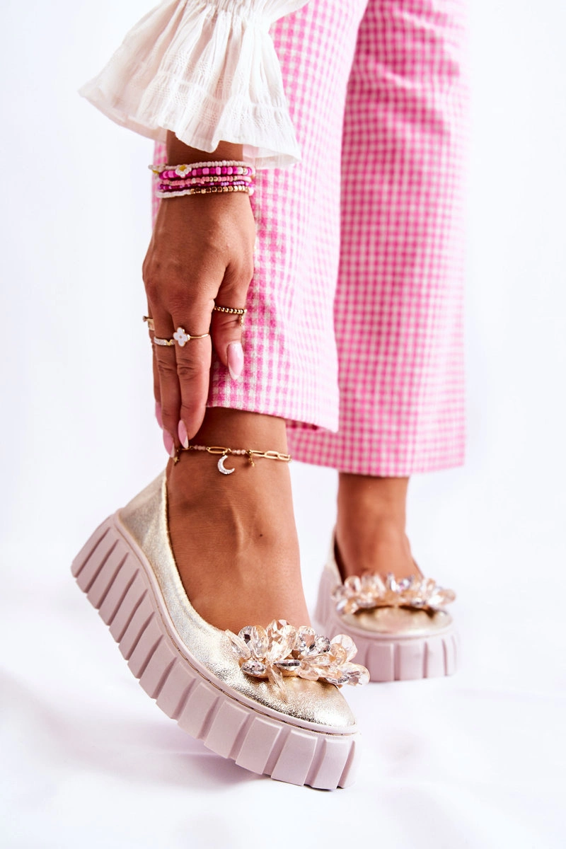 Skórzane Baleriny Na Platformie Z Ozdobą Złote Ladette