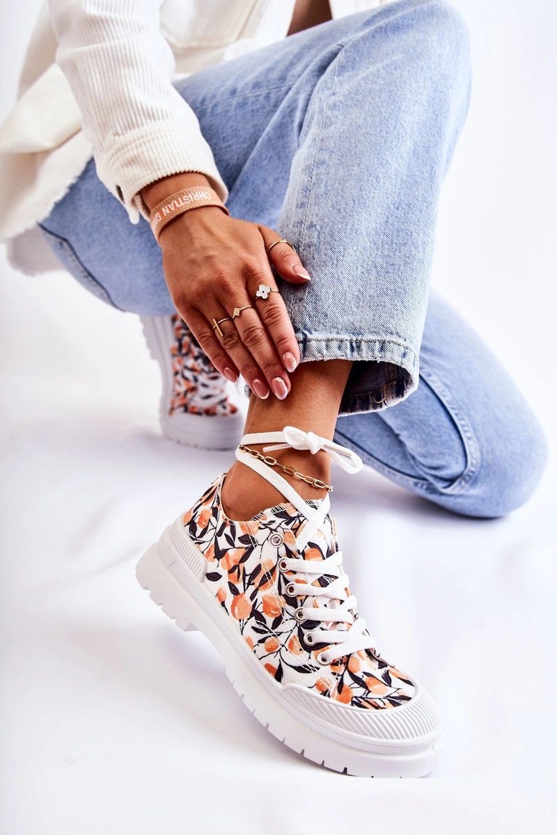 Niskie Trampki Wiązane W Owoce Białe Amissa