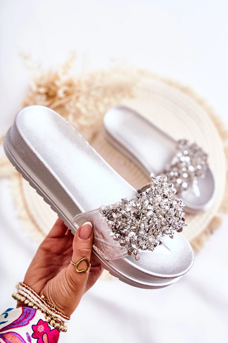 Damskie Klapki Na Platformie Z Ozdobami Srebrne Almina