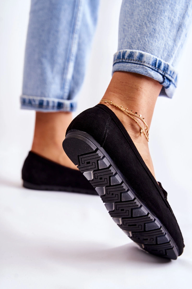 Niezwykle komfortowe mokasyny damskie zostały wykonane z eko zamszu. Wkładka z delikatną perforacją zapewni wygodę podczas użytkowania. Mokasyny dopełnią wiele Twoich stylizacji. Nosek lekko kwadratowy. Osadzone na płaskiej, gumowej podeszwie, która dodatkowo jest antypoślizgowa. Model klasyczny, wsuwany. Buty te posiadają ozdobę w postaci emblematu z dżetami w postaci cyrkonii. Przy wyborze rozmiaru prosimy sugerować się tabelą rozmiarów.