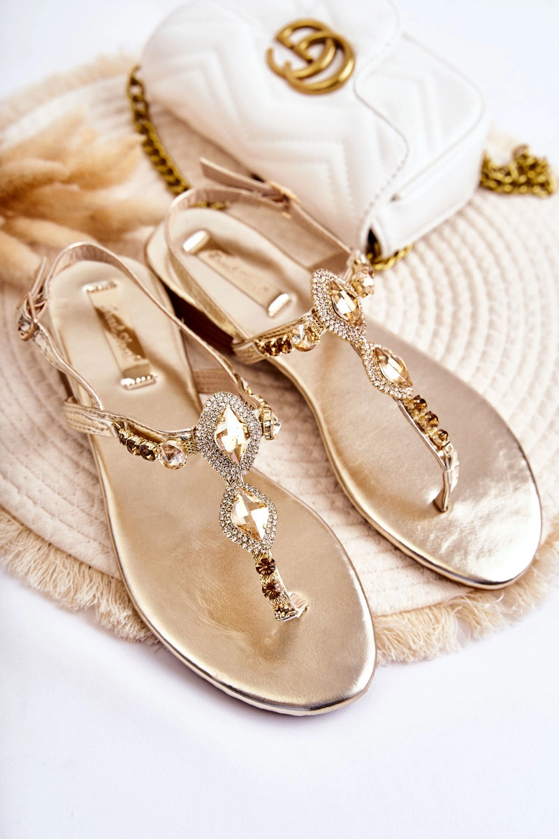 Damskie Modne Sandały Japonki Z Ozdobnymi Dżetami Złote Bellia