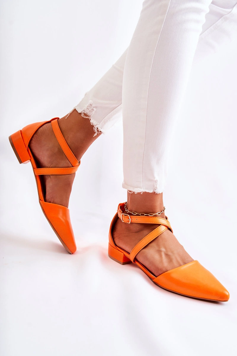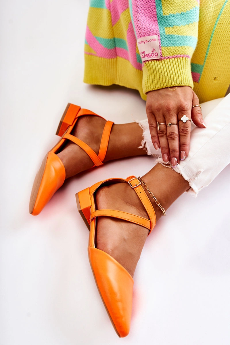 Skórzane Czółenka Na Niskim Obcasie Pomarańczowe Giovanna