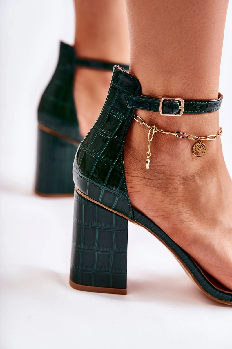 Damskie Skórzane Sandały Wężowy Wzór Zielone Sollana