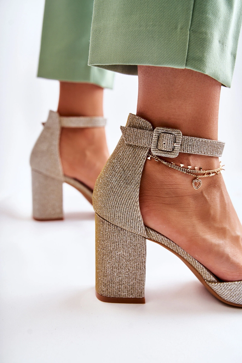 Błyszczące Czółenka Na Słupku Złote Amira