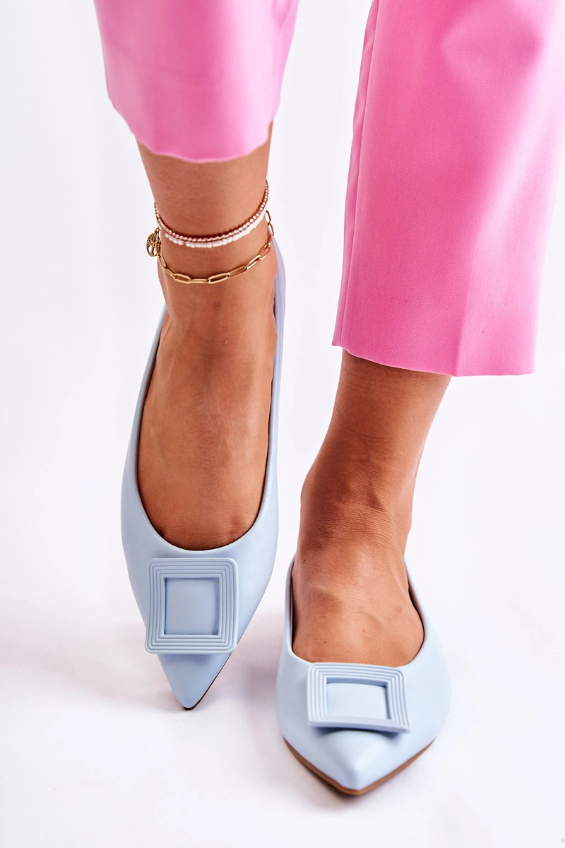 Skórzane Baleriny Z Ozdobą W Szpic Niebieskie Simone