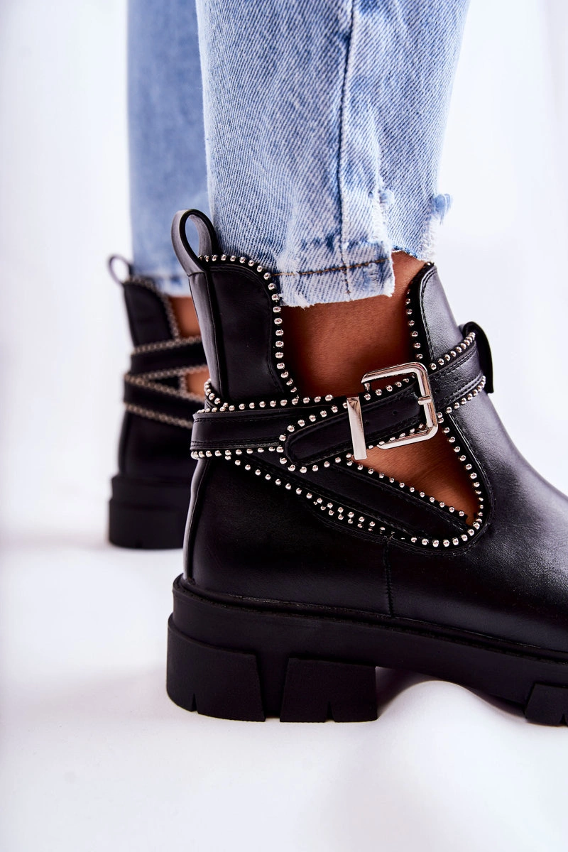 Damskie Skórzane Botki Z Ćwiekami Czarne Clares