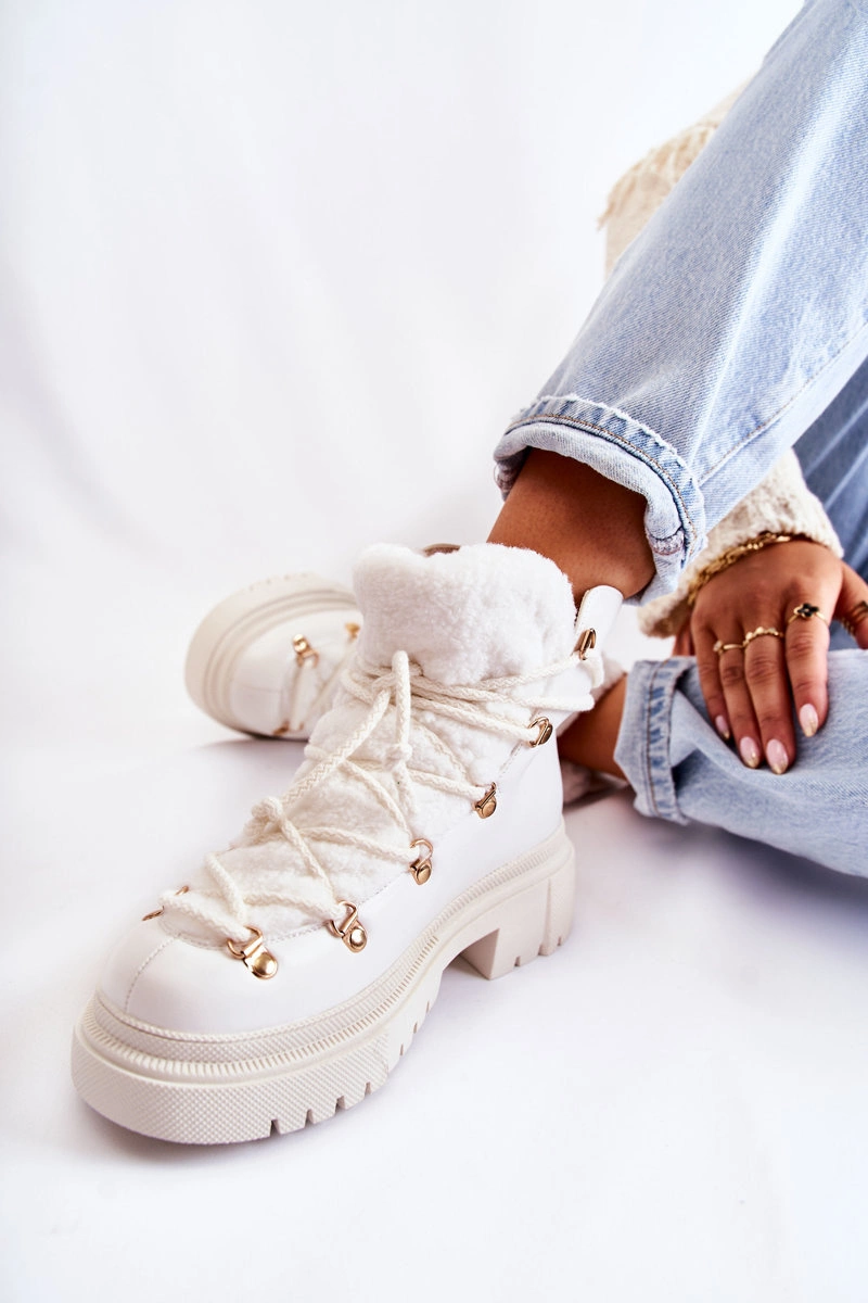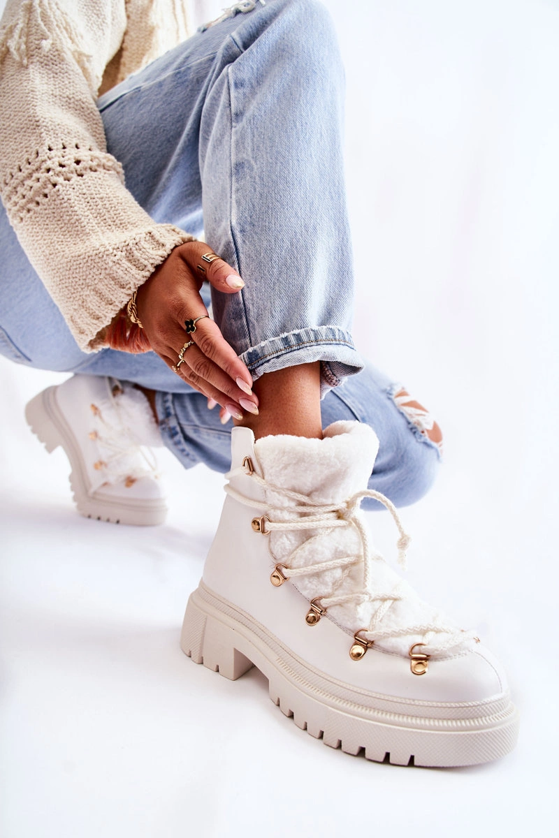 Skórzane Ocieplane Botki Trapery Białe Arisa