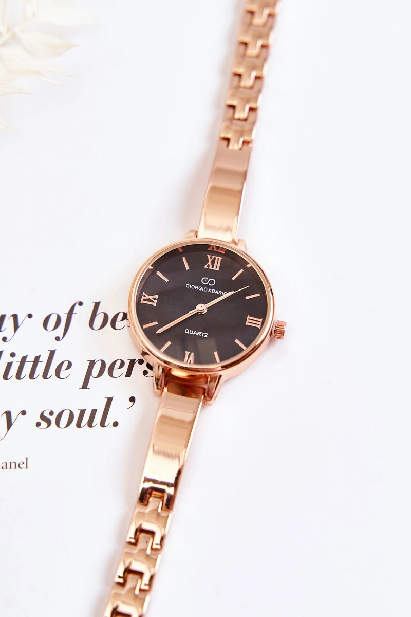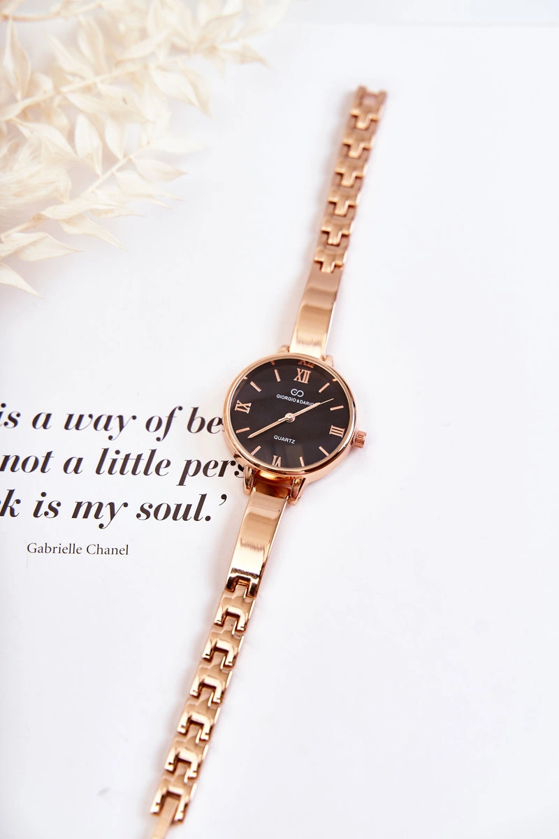 Zegarek Na Bransolecie Giorgio & Dario Z Czarną Tarczą Różowe Złoto