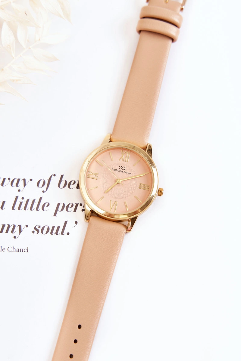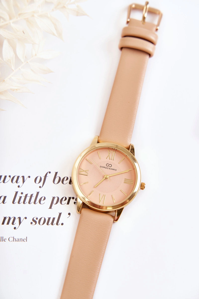 Damski Zegarek Na Skórzanym Pasku Giorgio&Dario Beżowy