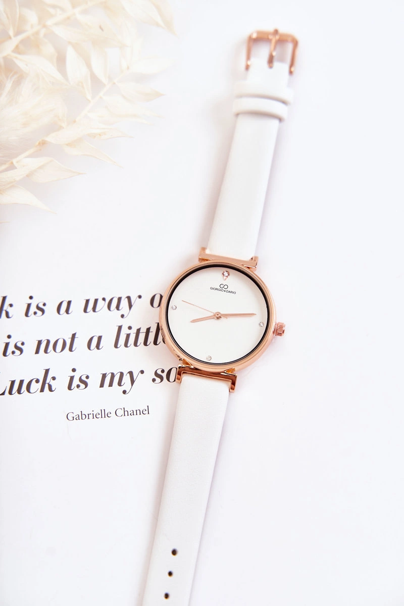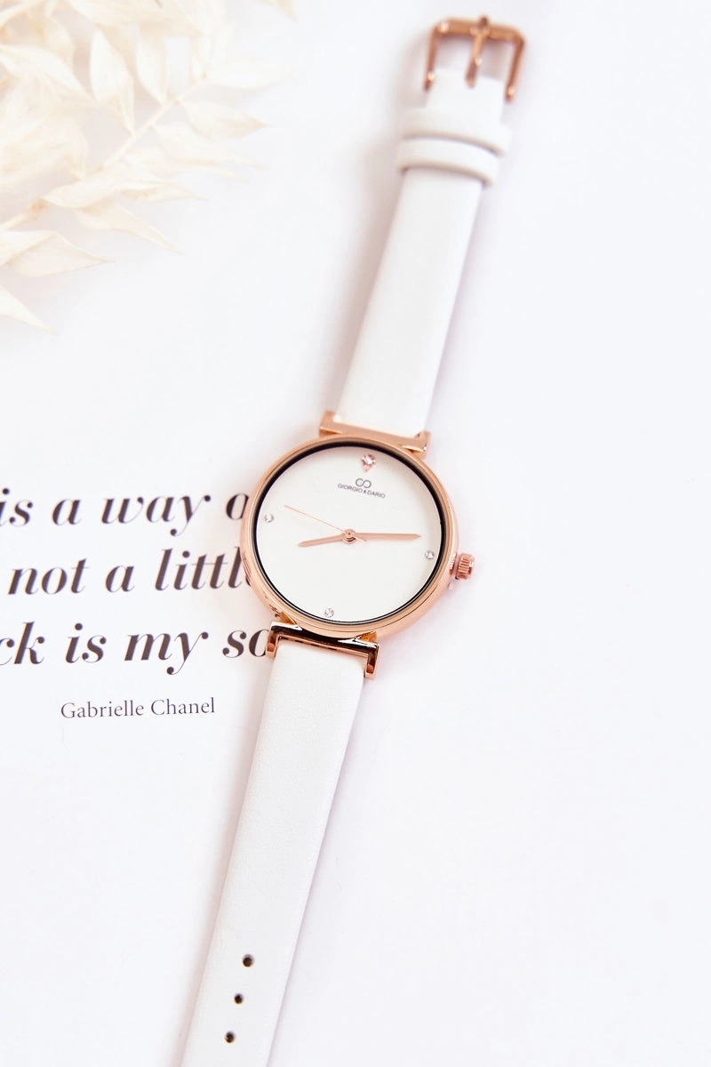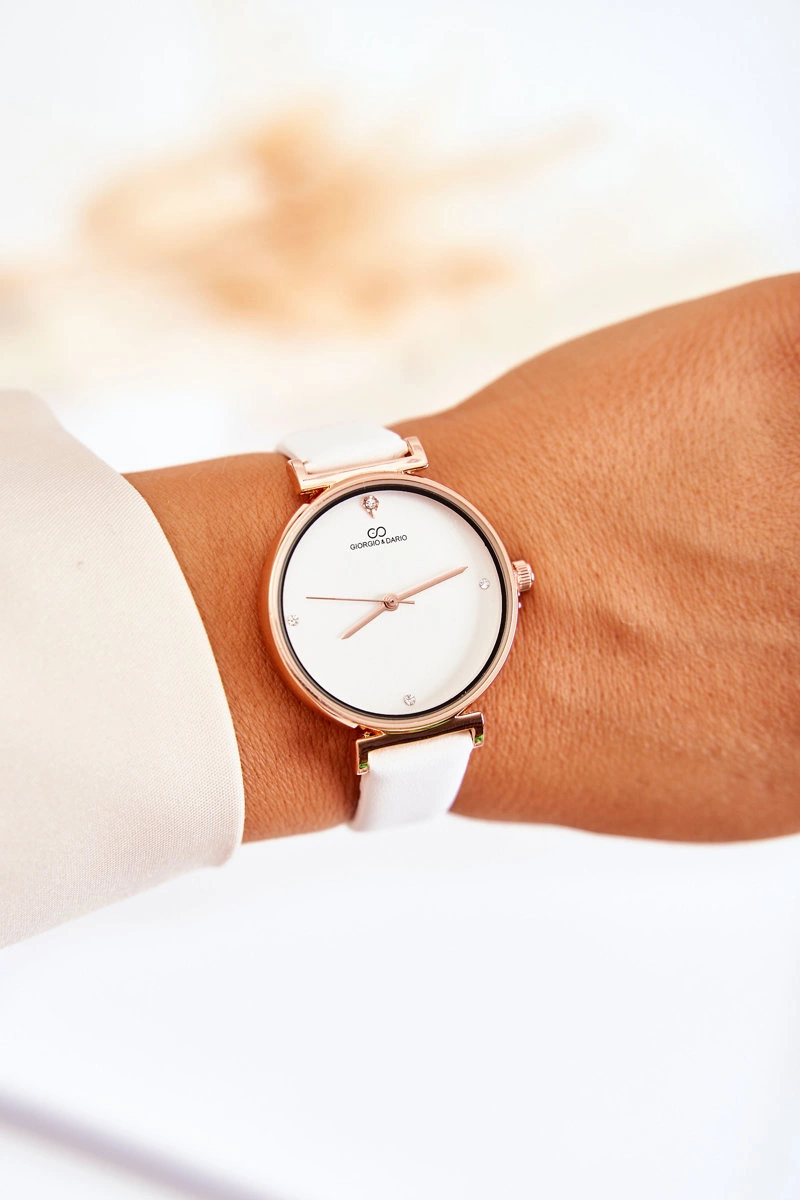 Damski Klasyczny Zegarek Na Skórzanym Pasku Giorgio&Dario Biały