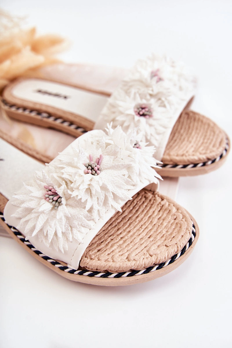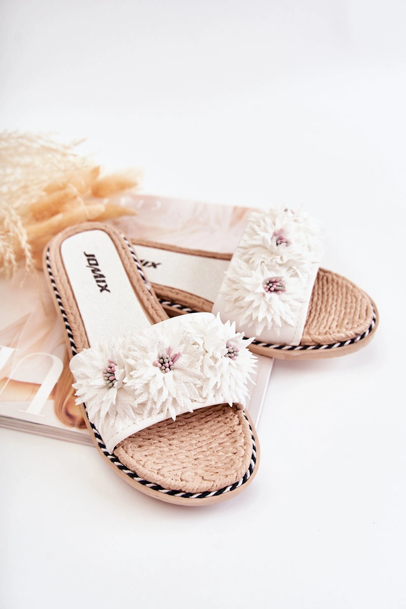Damskie Klapki Z Materiałowymi Kwiatami Białe Susana