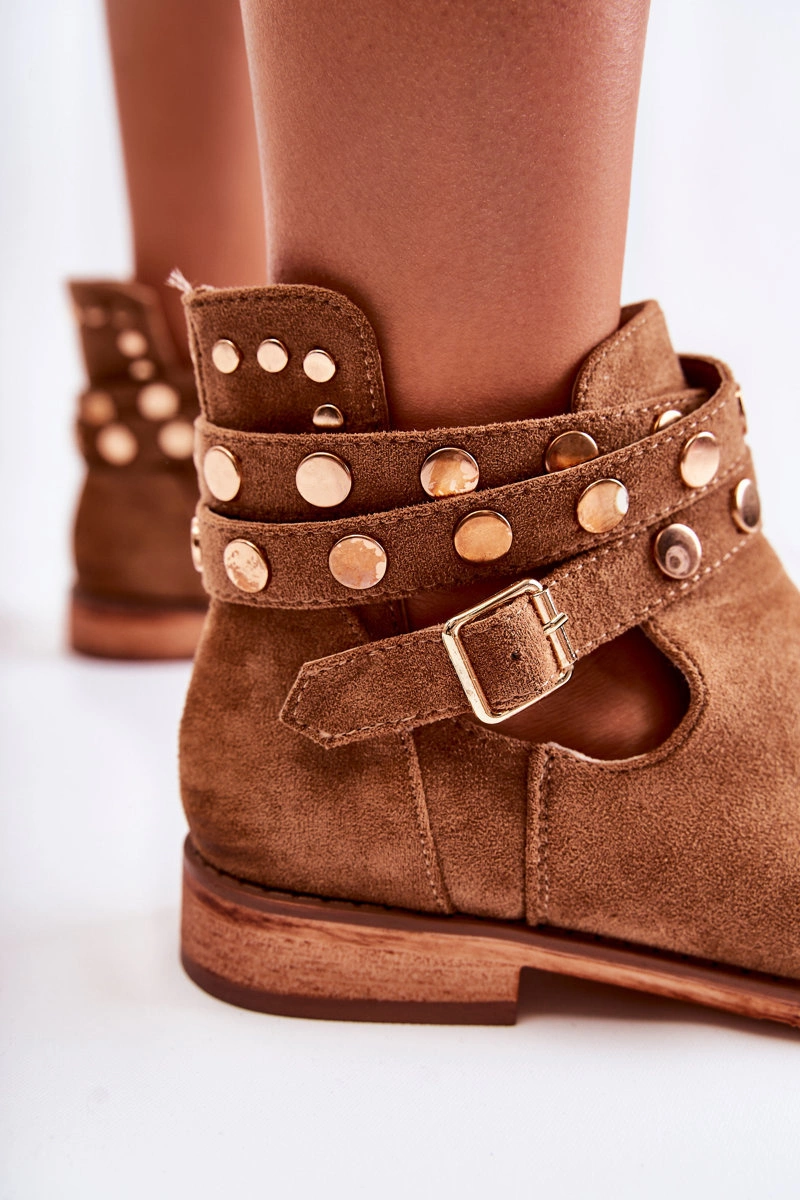 Damskie Botki Z Dżetami Na Płaskim Obcasie Brązowe Larino