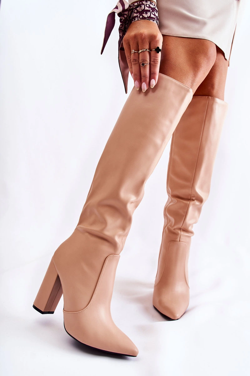 Klasyczne Kozaki Na Słupku Nude Mayra