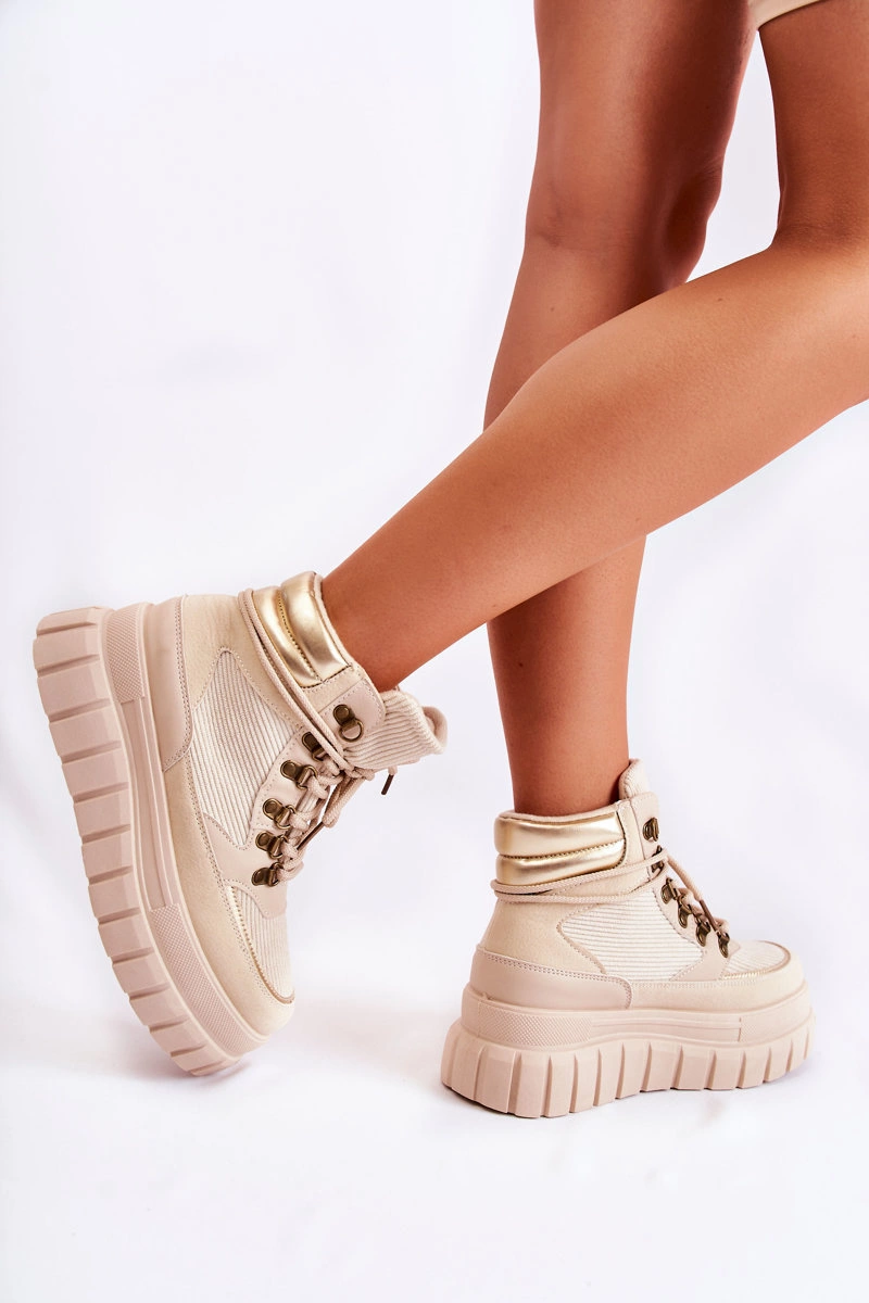 Modne Damskie Botki Na Platformie Beżowe Magnific