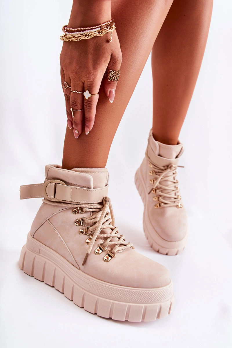 Modne Damskie Botki Na Platformie Z Paskiem Jasnobeżowe La Blanca