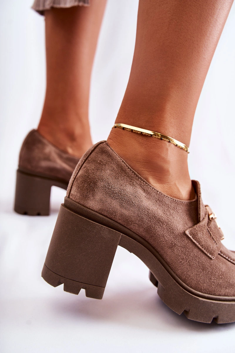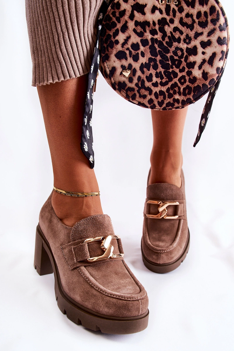 Cudowne półbuty na obcasie z cholewką wykonaną ze skóry naturalnej zamszowej. Wnętrze zostało pokryte skórą naturalną oraz materiałem tekstylnym, dzięki temu są bardzo komfortowe w użytkowaniu. Wkładka ze skóry naturalnej, a podeszwa wykonana z gumowego tworzywa. Stylowy obcas w postaci szerokiego słupka zapewni stabilizację na każdym kroku. Lustrzana ozdoba na przodzie. Zapiętek jest usztywniany. Dodatkowo pod językiem znajduje się gumka ściągająca, która sprawi, że but będzie idealnie dopasowany do stopy. Przy wyborze rozmiaru prosimy sugerować się tabelą rozmiarów.