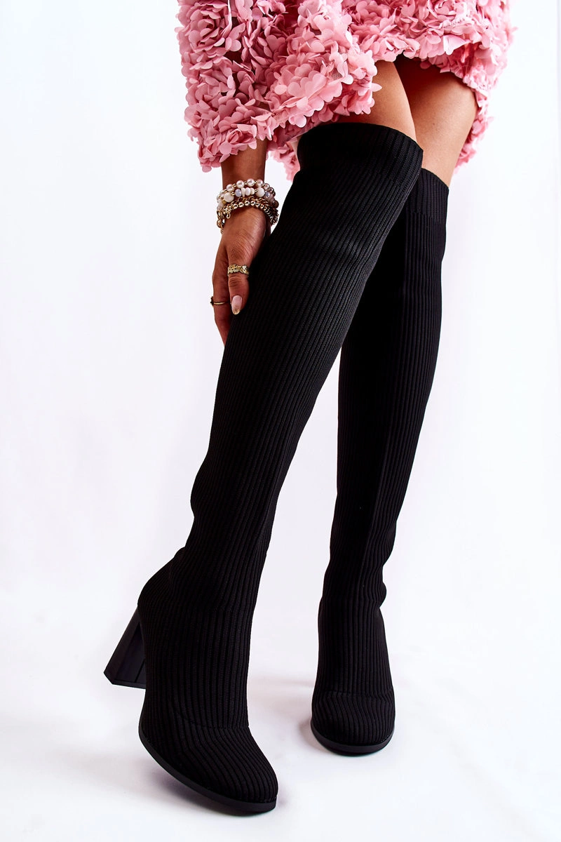 Prążkowane Klasyczne Kozaki Na Obcasie Czarne Laossi