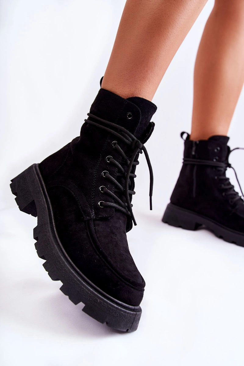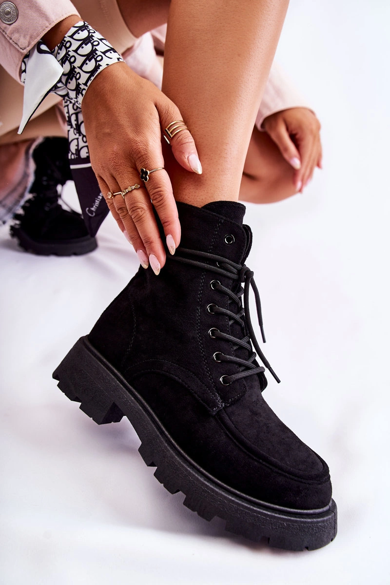 Damskie Zamszowe Botki Wiązane Czarne Vanita