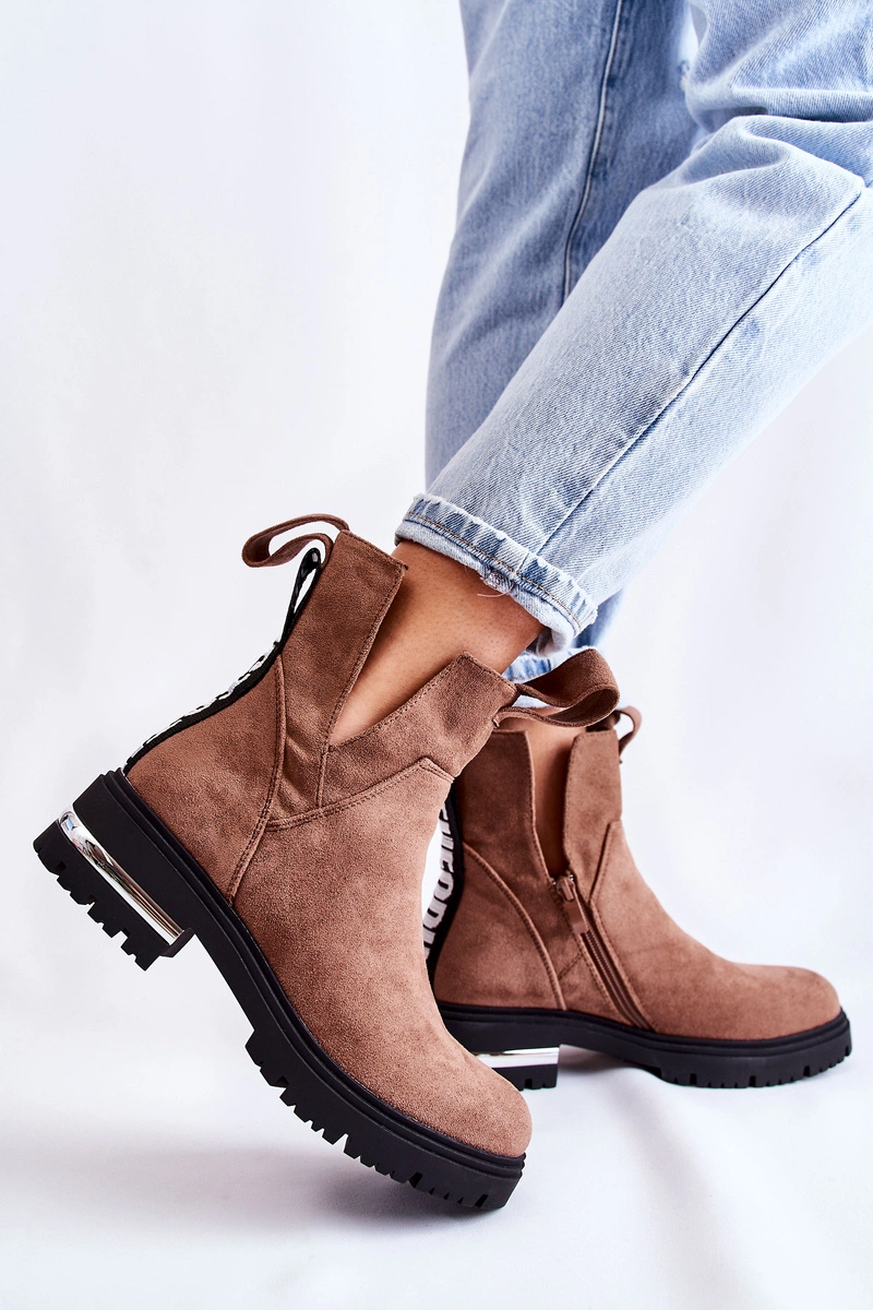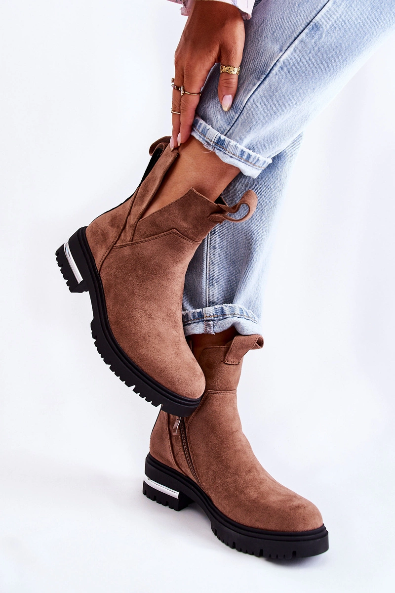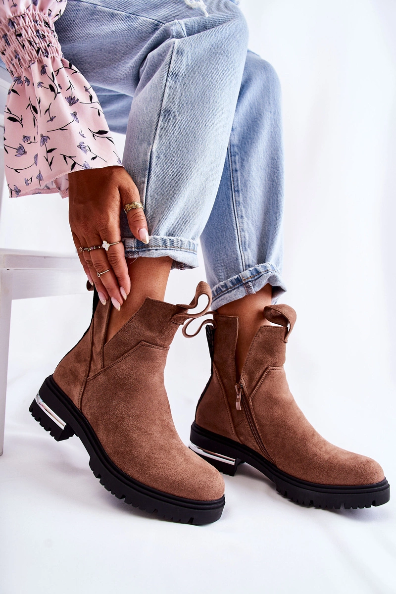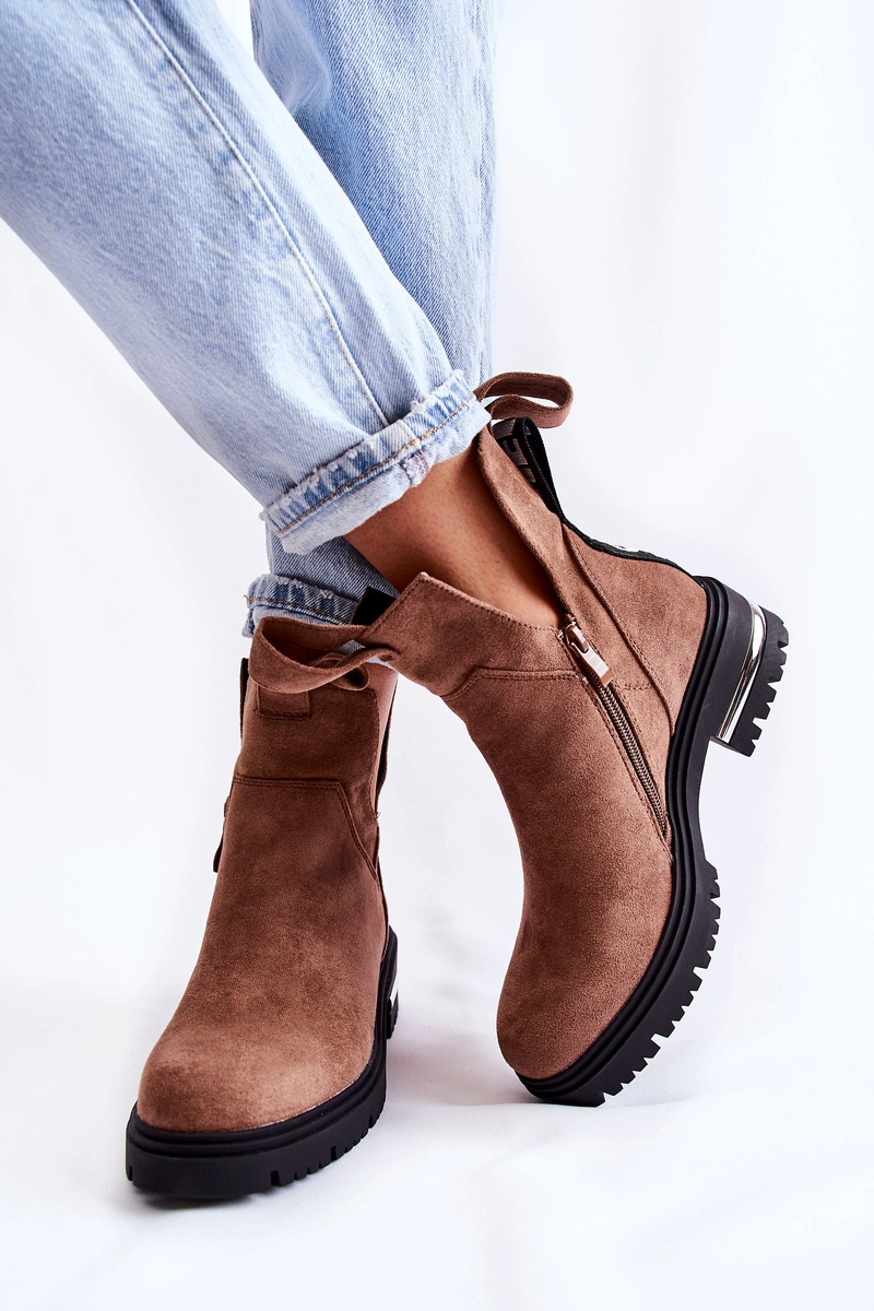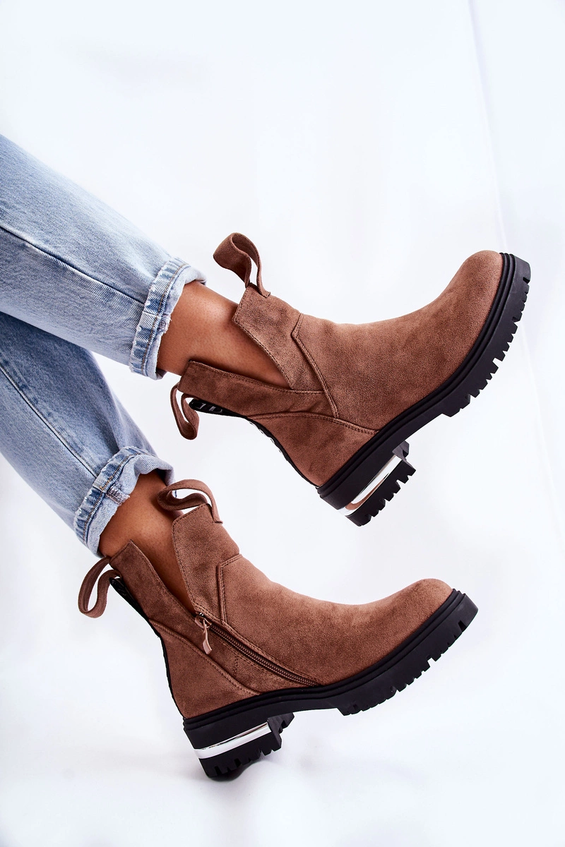 Zamszowe Botki Z Wycięciami Brązowe Elvera