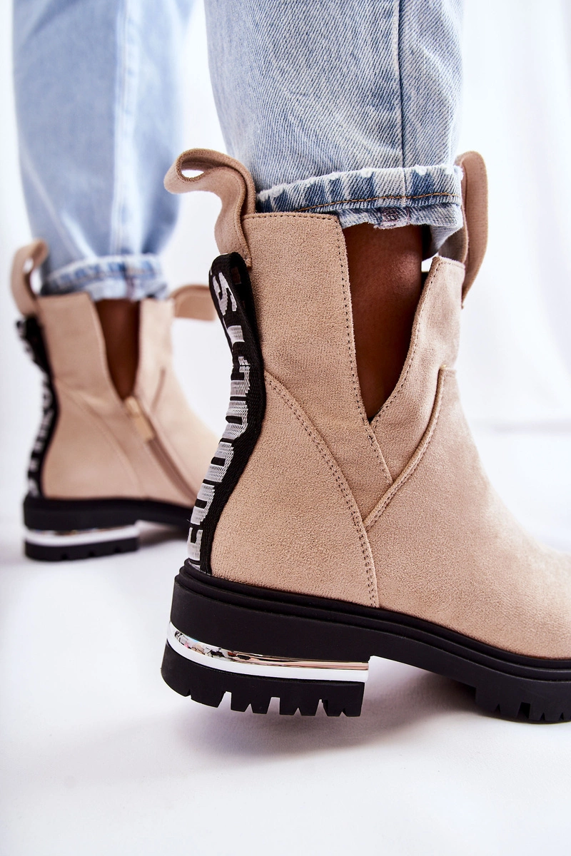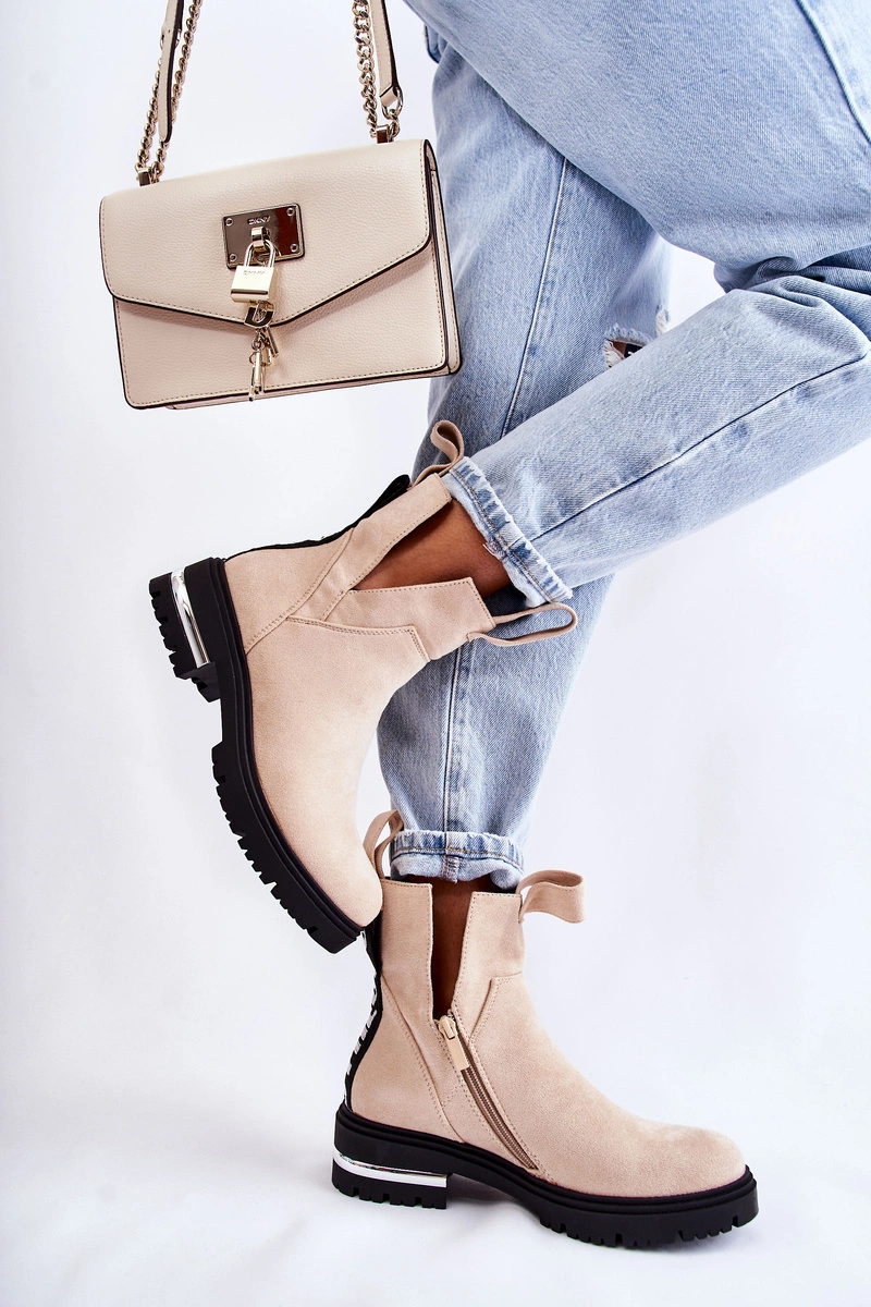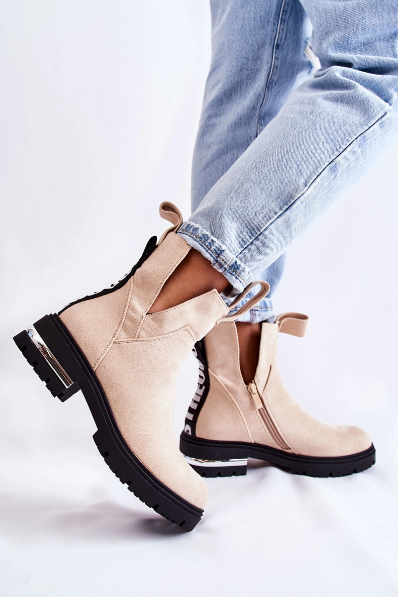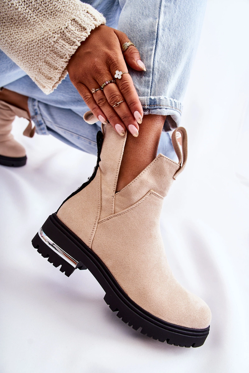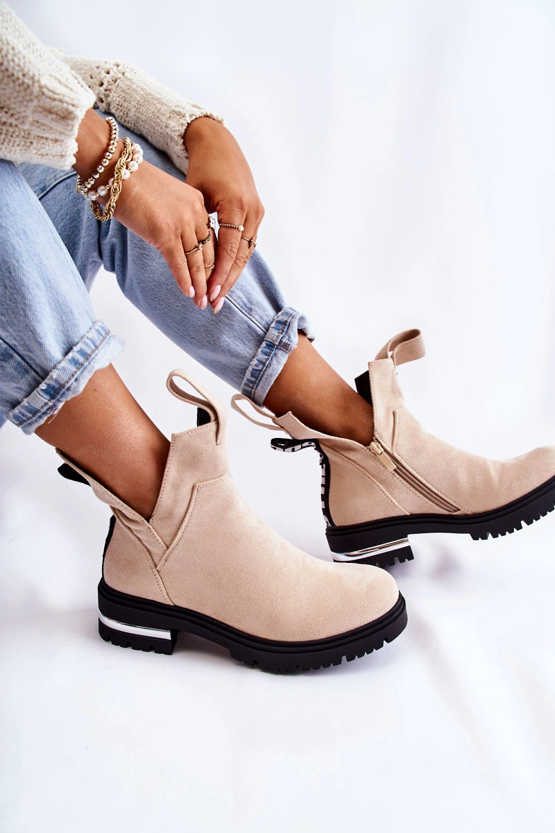 Zamszowe Botki Z Wycięciami Beżowe Elvera